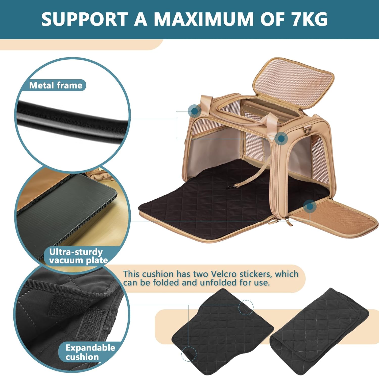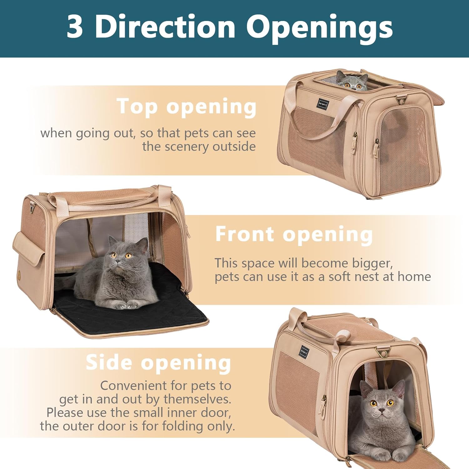 • УДОБНА, ПРОСТОРНА И ДИШАЩА: Четиристранният мрежест прозорец на транспортната кутия за котки е изработен от специална 3D сандвич мрежа, която увеличава уединението и безопасността на домашните любимци, като същевременно осигурява добра въздухопропускливост, особено подходяща за срамежливи домашни любимци; меката възглавница може да се разгъне за употреба.