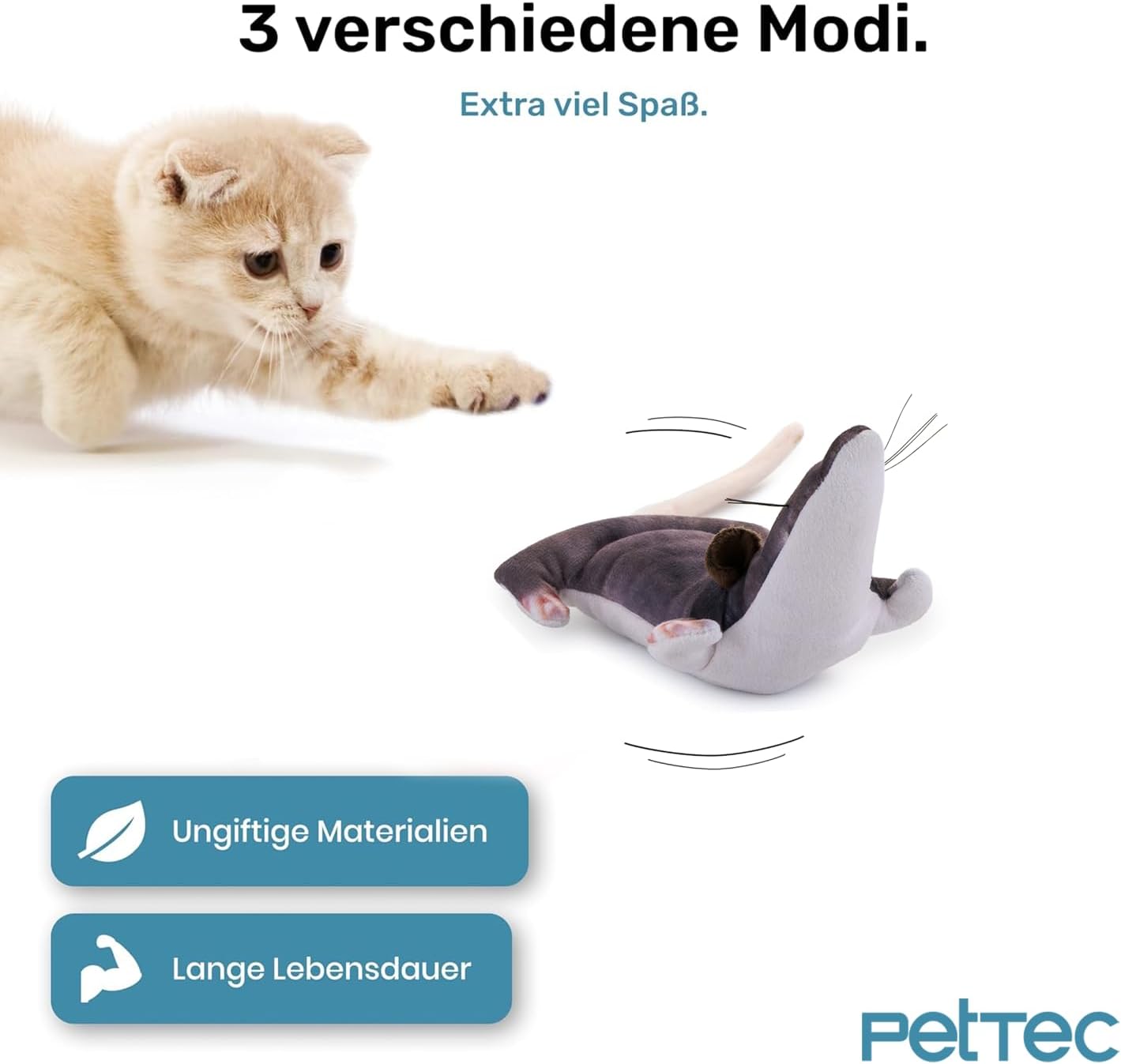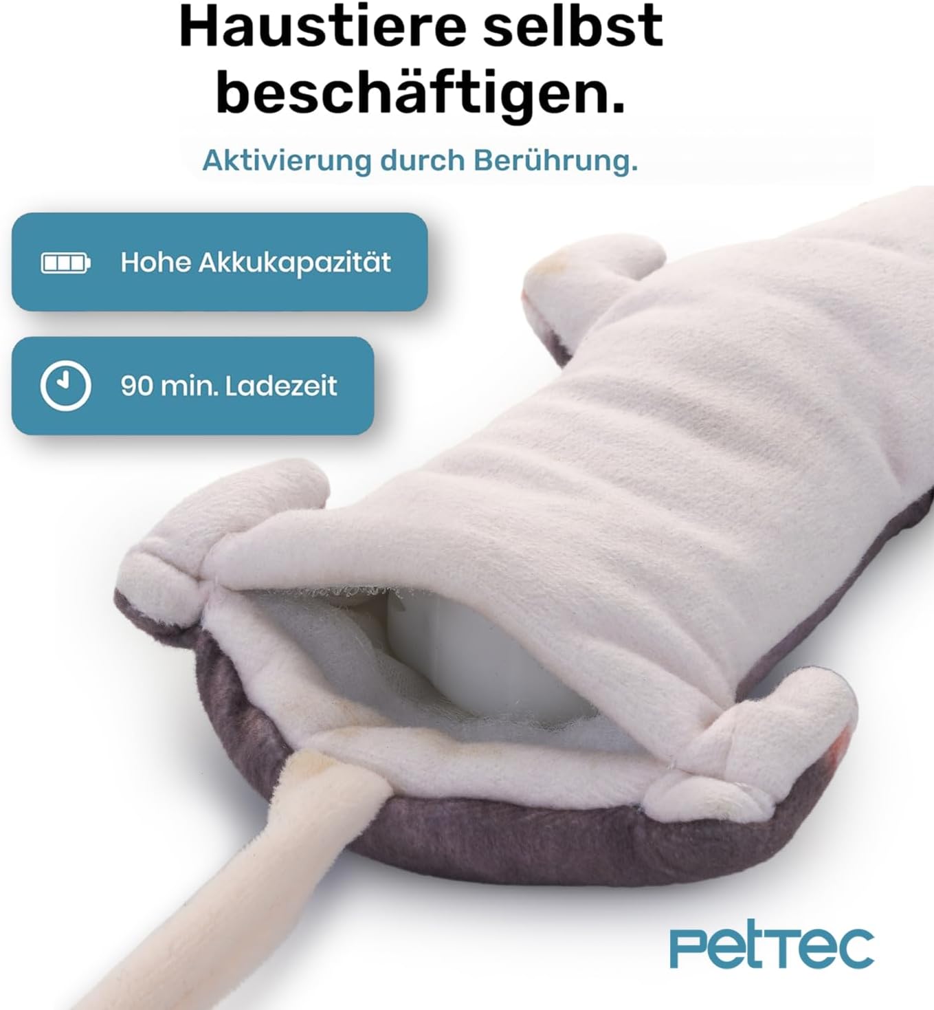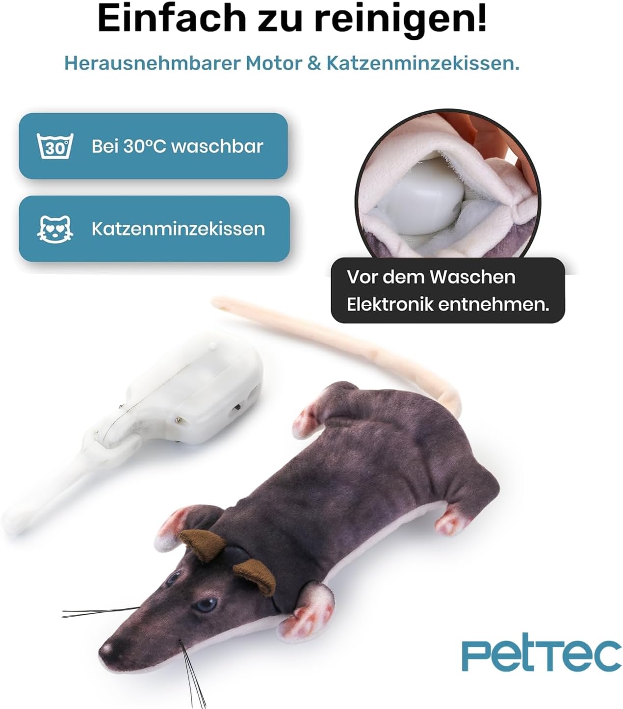 PetTec® Интерактивна играчка за котки Електрическа за самостоятелна заетост - Подвижна плъх мишка с котешка трева - Интерактивна играчка за котки - Автоматична играчка за котки - Играчка за котки
