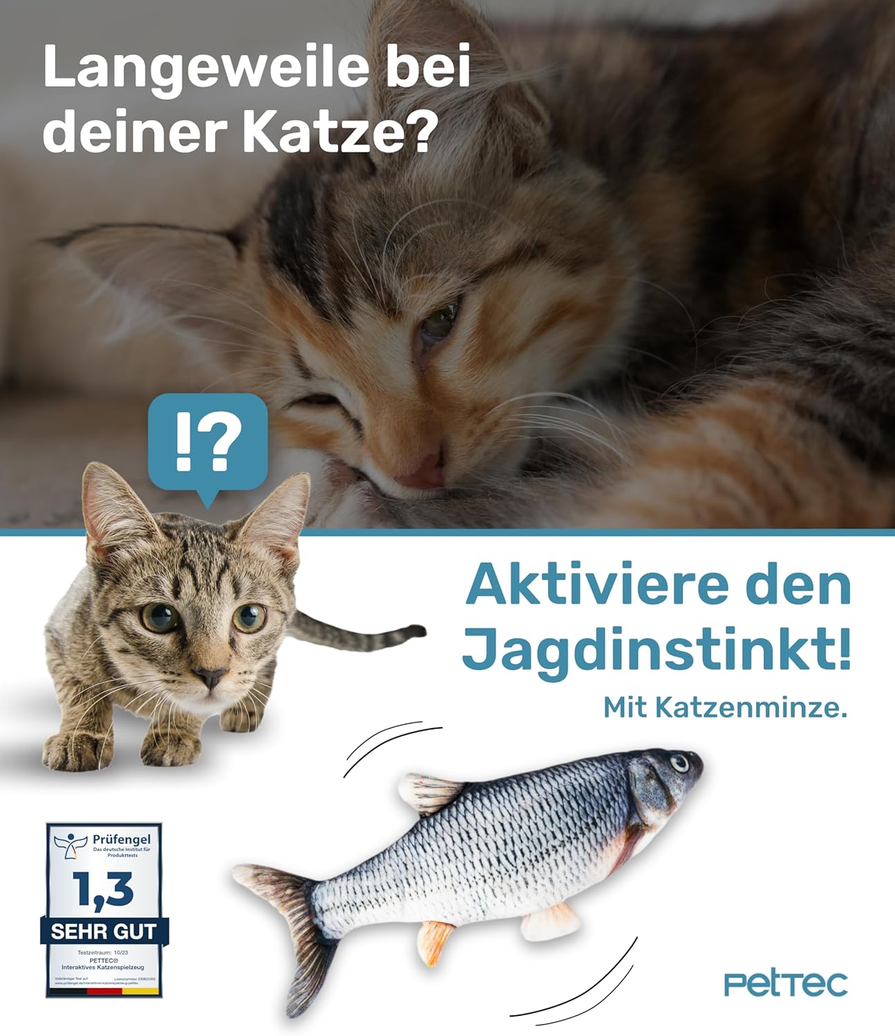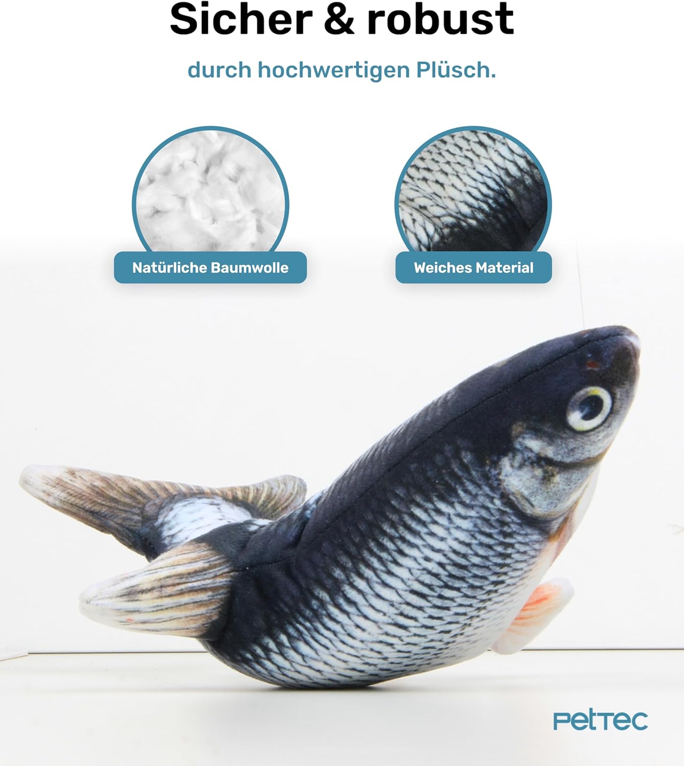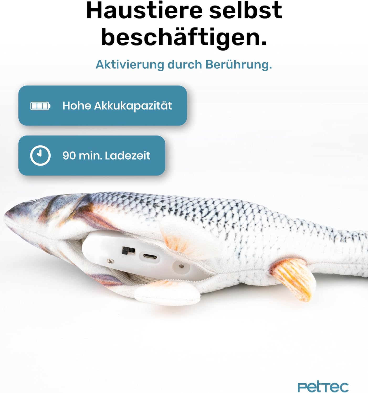 PetTec Рибка Котешка Играчка Интерактивна Електрическа Автономия Подвижна Рибка за Котки с Котешка Меса