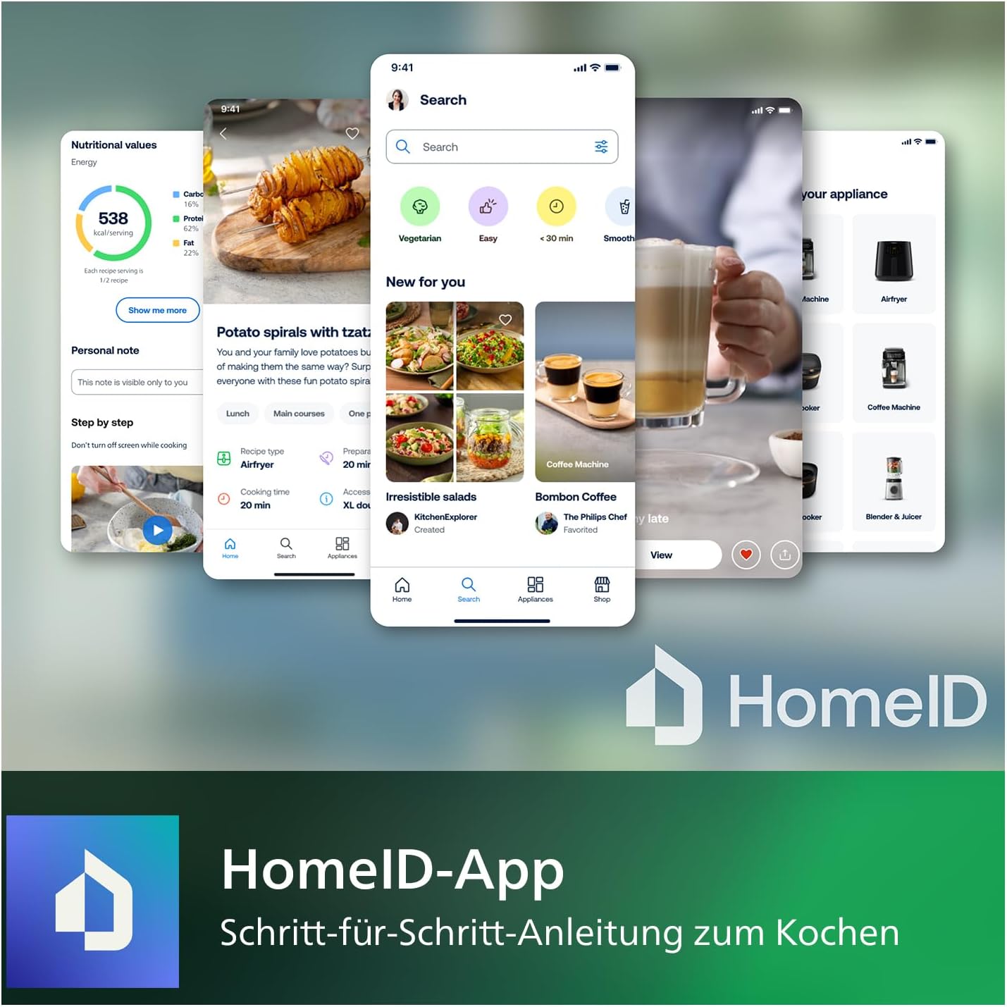 • Приложение HomeID: преобразете ястията си с подбрани по целия свят, вкусни и здравословни рецепти. Насладете се на готвене стъпка по стъпка с прецизни настройки за перфектни ястия.