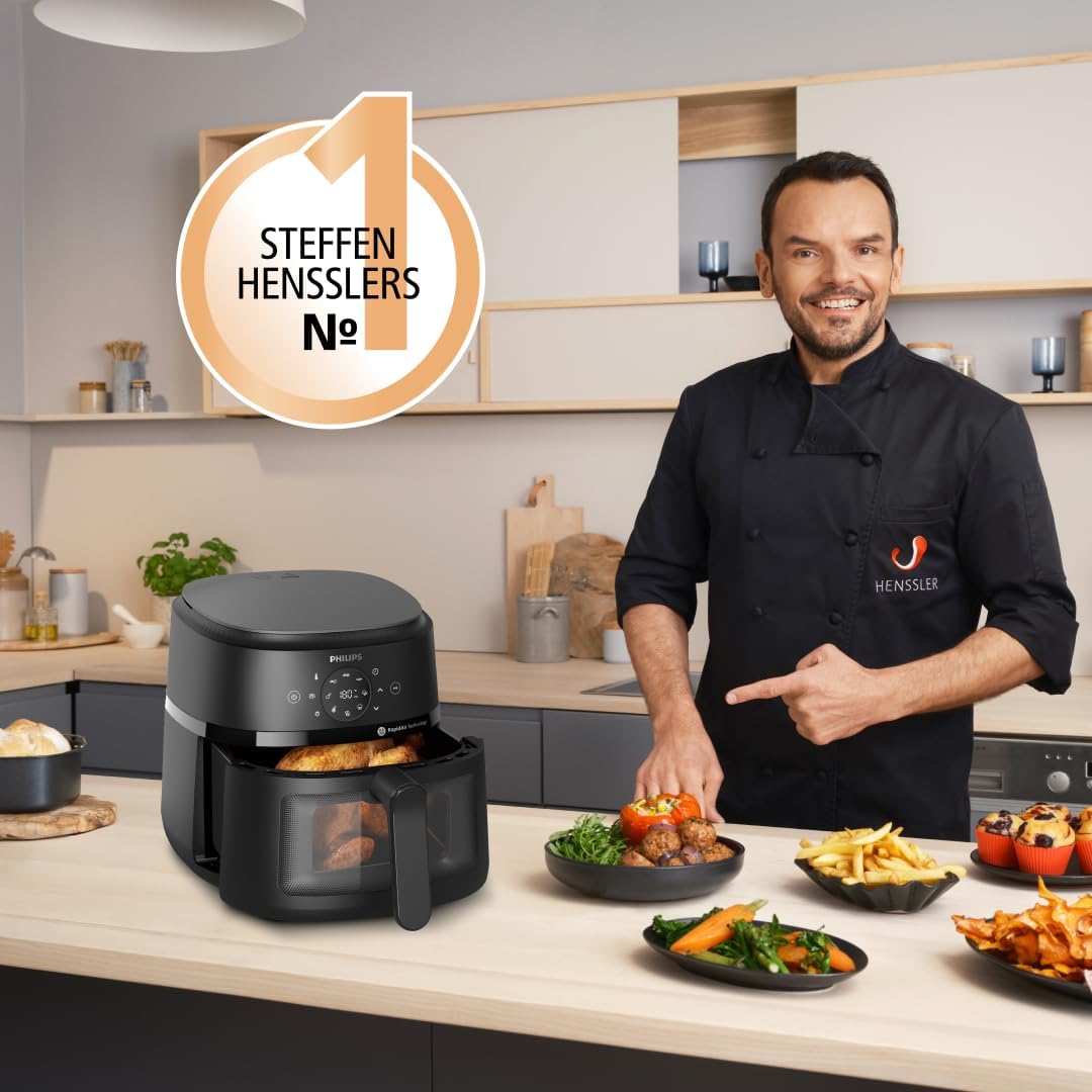 Philips Airfryer серия 2000 - 13 опции за приготвяне, 6,2 л, компактен дизайн с прозорец за готвене, технология RapidAir, пържене с до 90% по-малко мазнини, лесен за почистване (NA230/00)