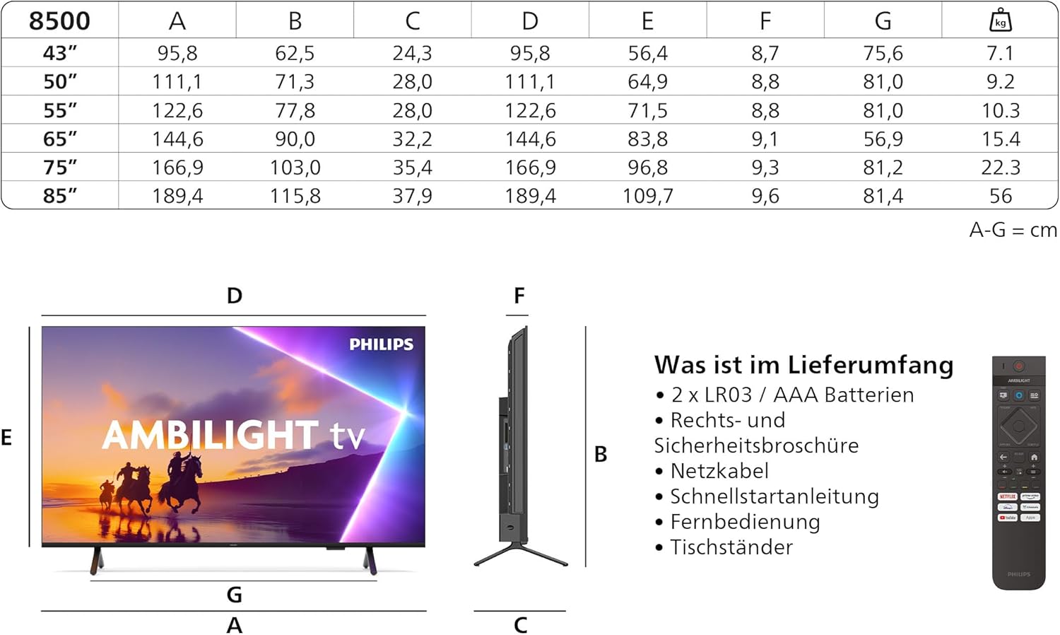 Philips Ambilight 50PUS8500 4K LED Smart TV - 50-инчов дисплей с Pixel Precise Ultra HD, Titan OS, Dolby Vision и Dolby Atmos звук