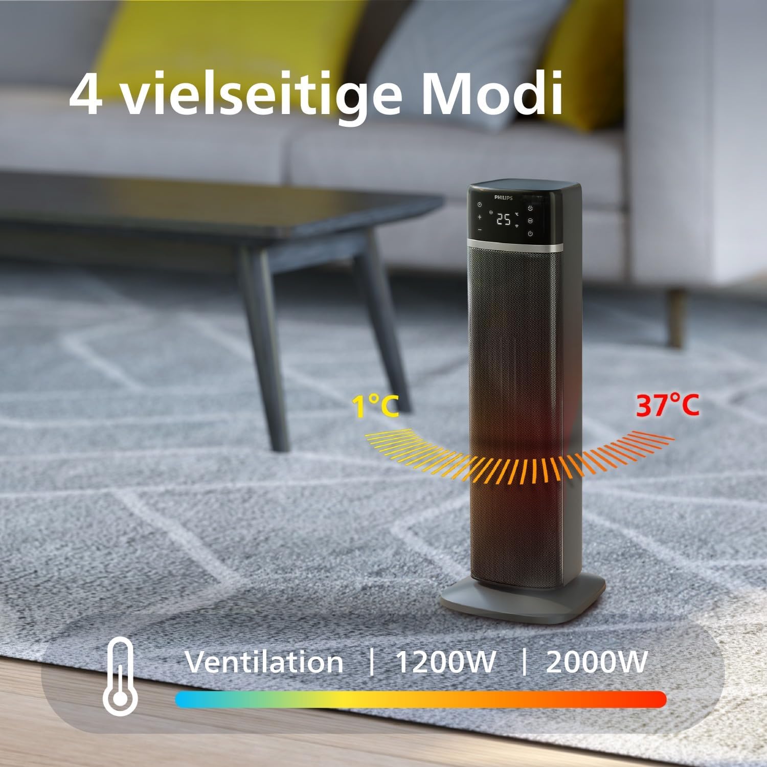 • Бързо загряване за 2 секунди: с регулируема мощност до 2000 W. Идеален за помещения с размер до 20 м².