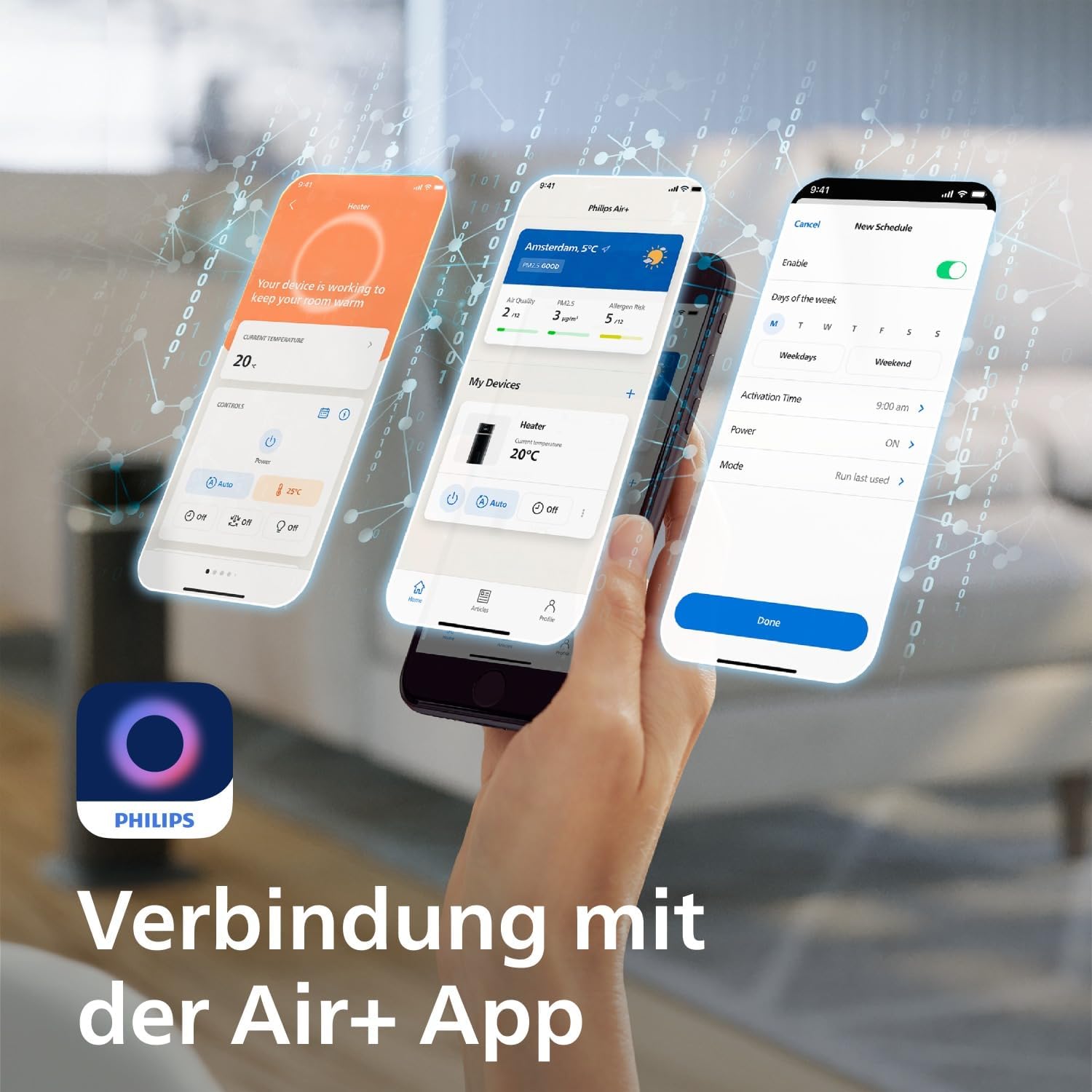 • ВРЪЗКА С ПРИЛОЖЕНИЕТО PHILIPS AIR+: Настройте отоплението, наблюдението или програмирането, независимо дали сте у дома или в движение.