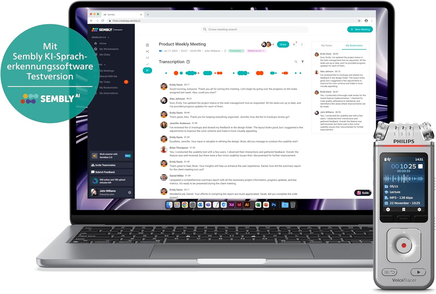 • Пробен лиценз за Sembly AI (30 дни): Разпознаване на глас от множество говорители, транскрипция и генерирани от изкуствен интелект, прецизни резюмета на срещи, поддържа 50 езика
