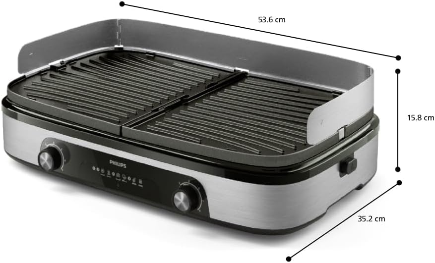Philips Table Grill 5000 Series - Голям семеен грил, обръщаеми плочи, две зони за нагряване, 5 температурни нива, 2400 W, незалепващо покритие, подходящ за съдомиялна машина (HD6222/95), черен