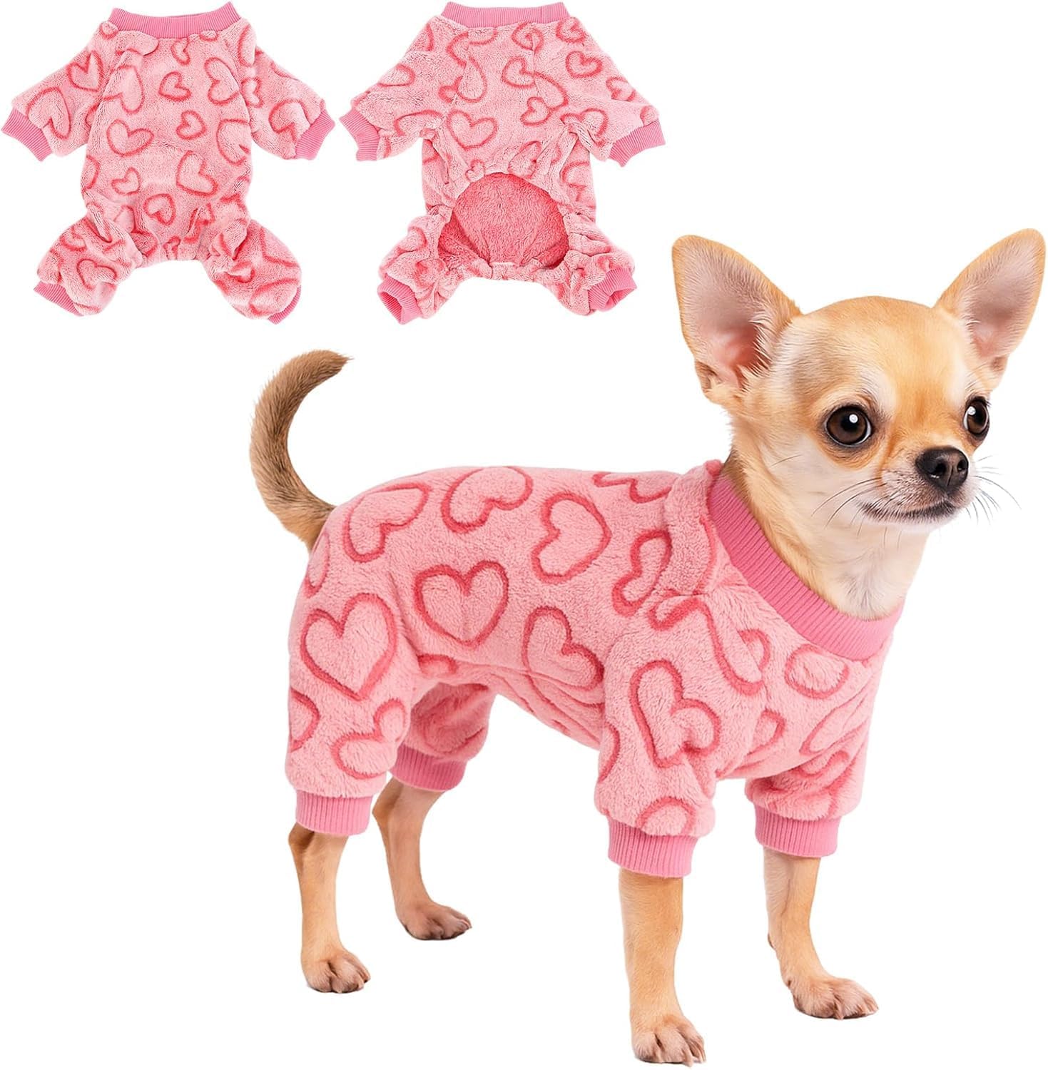 Пижама за кучета от полар Пижама за кучета със сърце Целувка с пълнеж Пижама за Свети Валентин Гащеризон за малки кучета за кученца, чихуахуа, йоркширски териери (L)