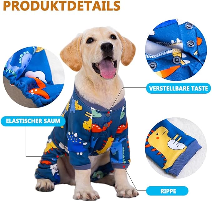 • [ПОРОДИ] Предлага се в девет размера: от малки кучета от 2,4 кг до големи кучета от 34 кг, винаги ще намерите подходящата пижама за вашите малки, средни и големи кучета.