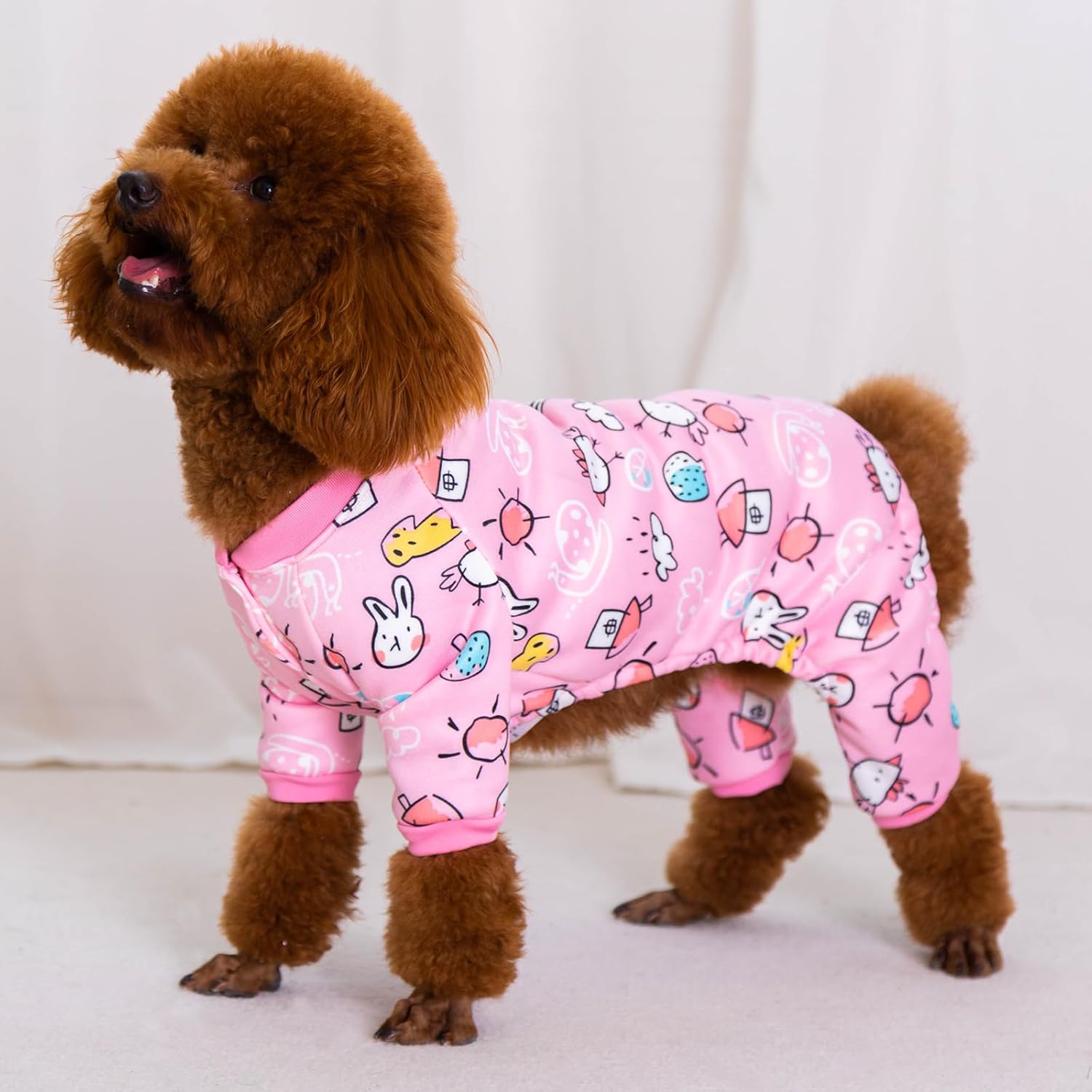 • [ПОРОДИ] Предлага се в девет размера: от малки кучета от 2,4 кг до големи кучета от 34 кг, винаги ще намерите подходящата пижама за вашите малки, средни и големи кучета.
