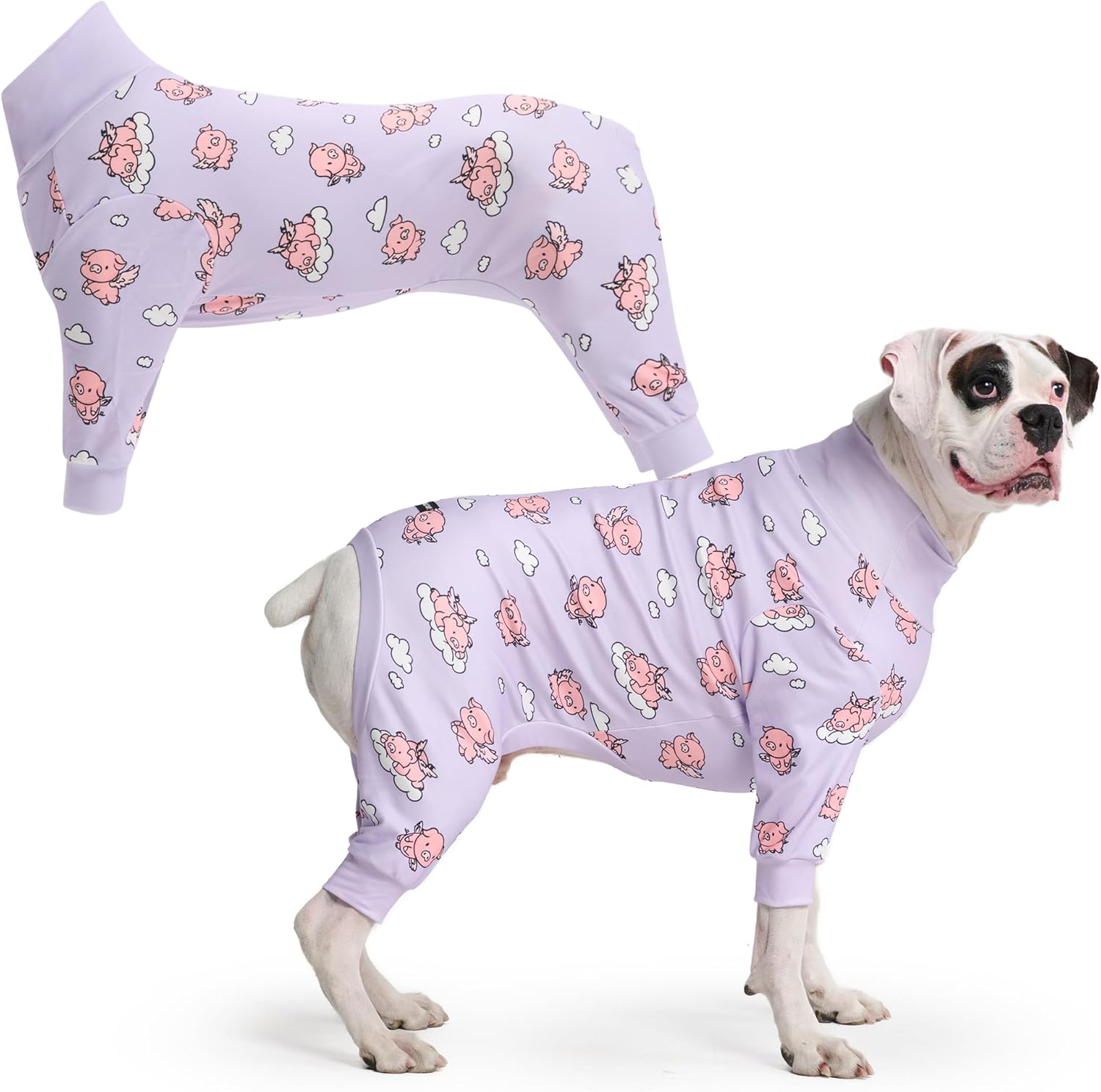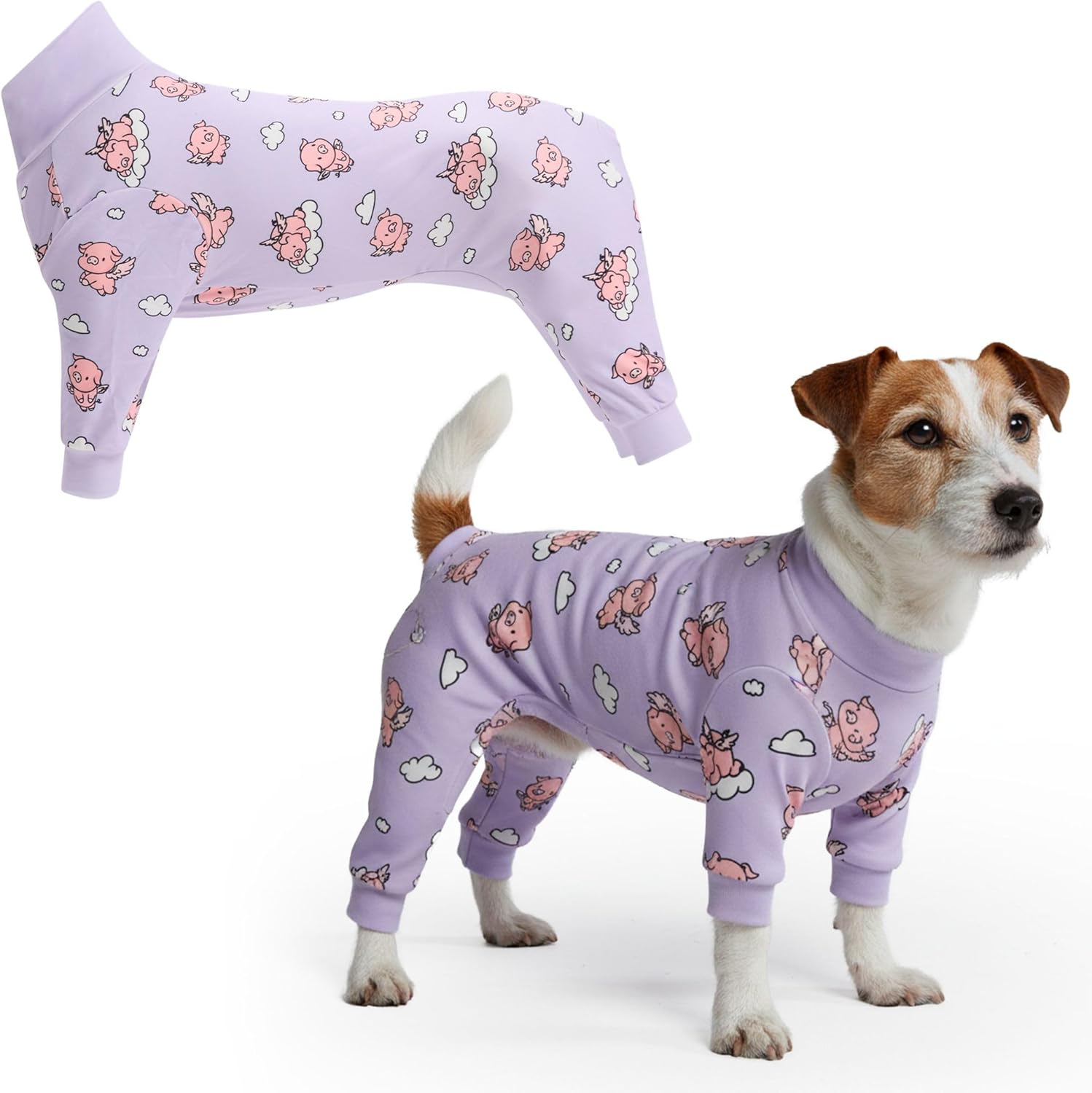 Пижама за кучета Spark Paws, ултра мека и еластична в 4 посоки, за малки, средни и големи породи, когато прасетата летят, лилава, размер 4XL