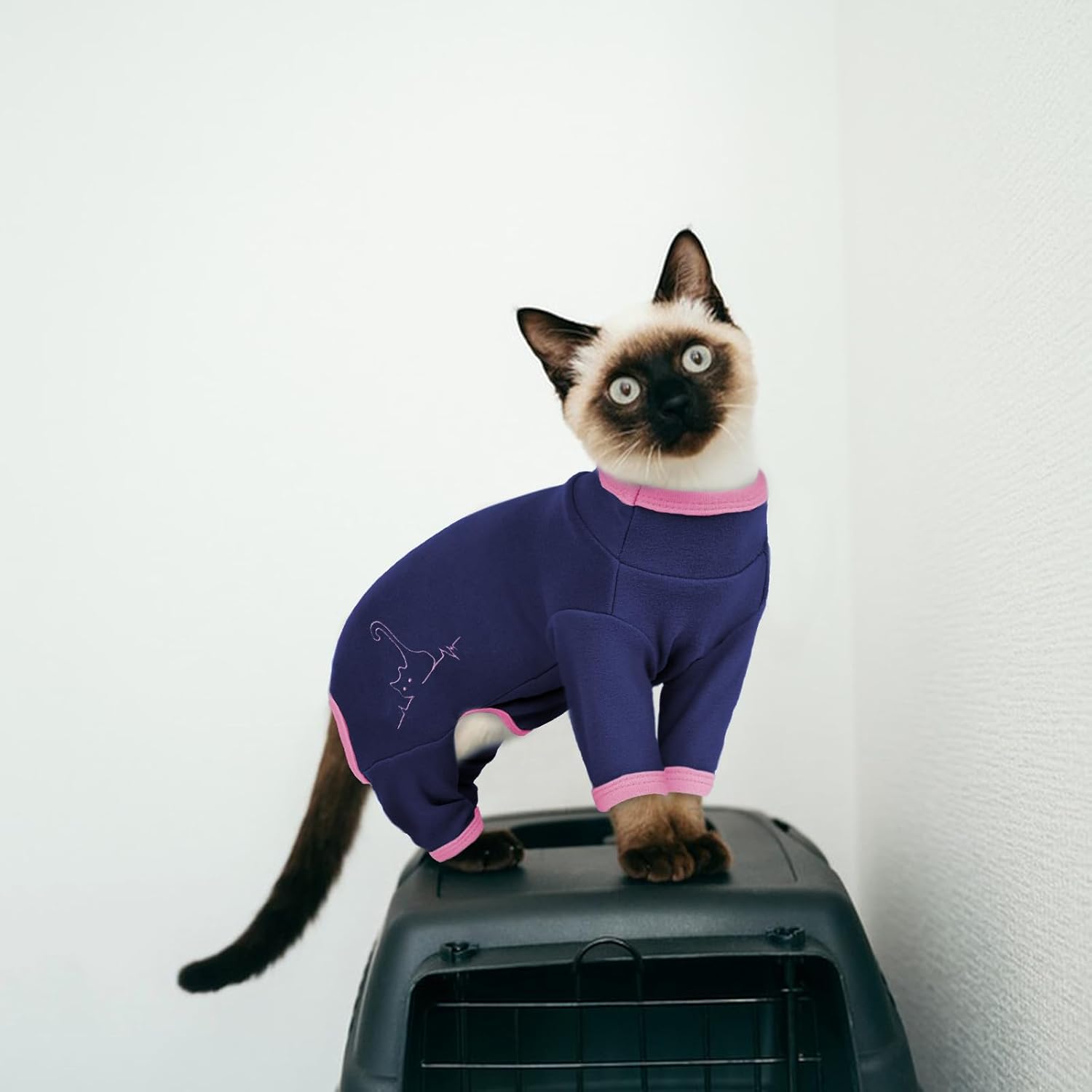 • Стилен дизайн: Класическият и семпъл дизайн на този котешки пуловер е идеален за ежедневно носене, пижами, снимки, партита и празненства, а също така може да се използва за покриване на котешки рани. (Забележка: Голям отвор на корема за лесен достъп до тоалетната; не е подходящ като следоперативен котешки костюм след кастрация или за покриване на коремни рани).