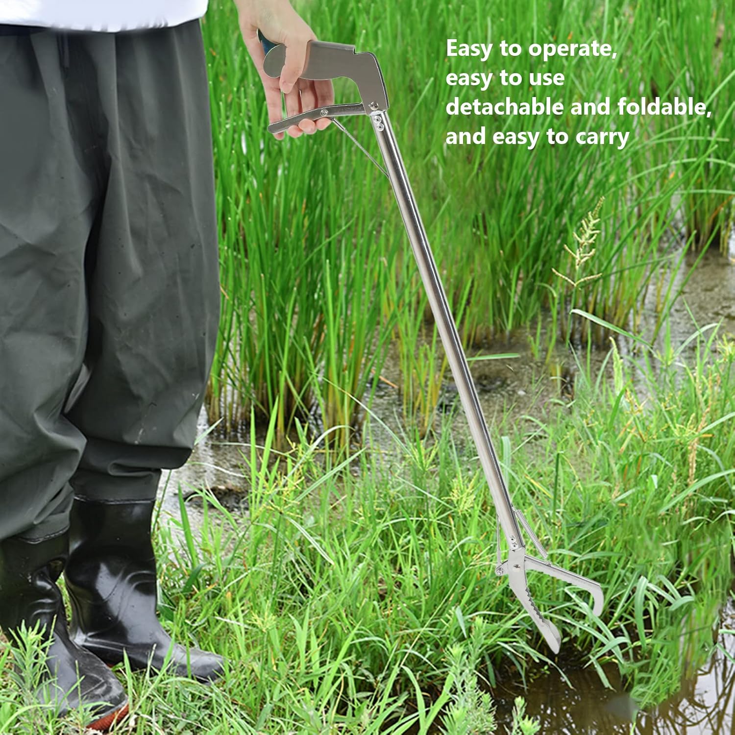 • Практичен и преносим дизайн: Разглобяеми и сгъваеми за лесна употреба. Проектирани за лесна употреба и носене, тези щипки за раци се отличават с разглобяем и сгъваем дизайн. Това ги прави лесни за съхранение и транспортиране, осигурявайки удобство както за любители, така и за професионалисти, работещи във водна среда.