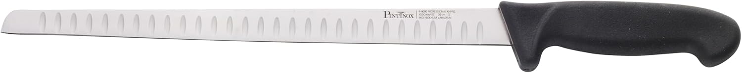 Ножът за сьомга е част от линията P-9000, подходящ както за професионални готвачи, така и за домашна употреба. Този професионален нож за сьомга е идеалният избор за любителите на риба, предлагащ висококачествено професионално обслужване на достъпна цена. Острието от неръждаема стомана с дължина 30 см е с форма, предназначена за прецизно рязане на риба. Дръжката е ергономично проектирана и перфектно балансирана, което я прави лесна за управление, безопасна и неплъзгаща се. Практичен и лесен за почистване, този нож е изключително издръжлив и може безопасно да се почиства в съдомиялна машина веднага след употреба. Препоръчва се цялостно подсушаване след измиване, за да се запази безупречният вид на ножа.