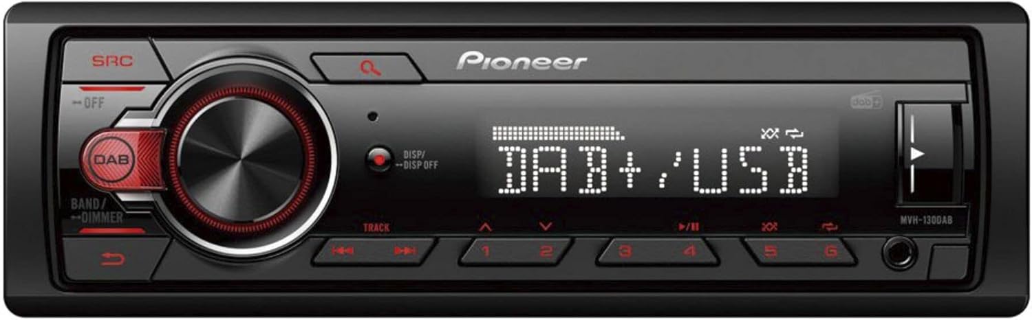 Pioneer MVH-130DAB, 1-DIN автомобилно радио с RDS и DAB+, USB, AUX вход, малка дълбочина за монтаж