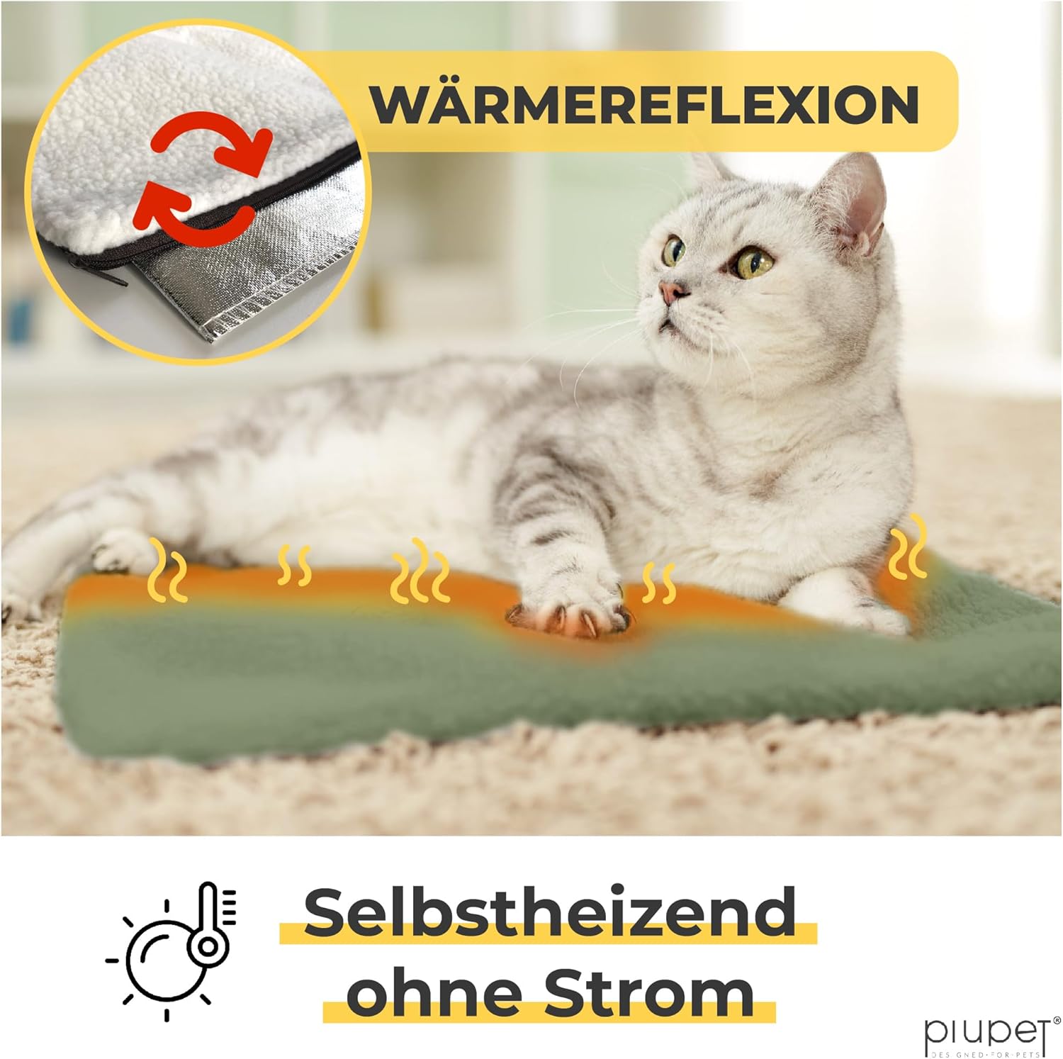 PiuPet® Самозагряващо се одеяло за котки, 60 x 45 см, Електрическо одеяло без електричество, Затоплящо одеяло за котки, Електрическо одеяло за котки без електричество, Одеяла за котки, Кошара за котки, (за котки, Зелено)