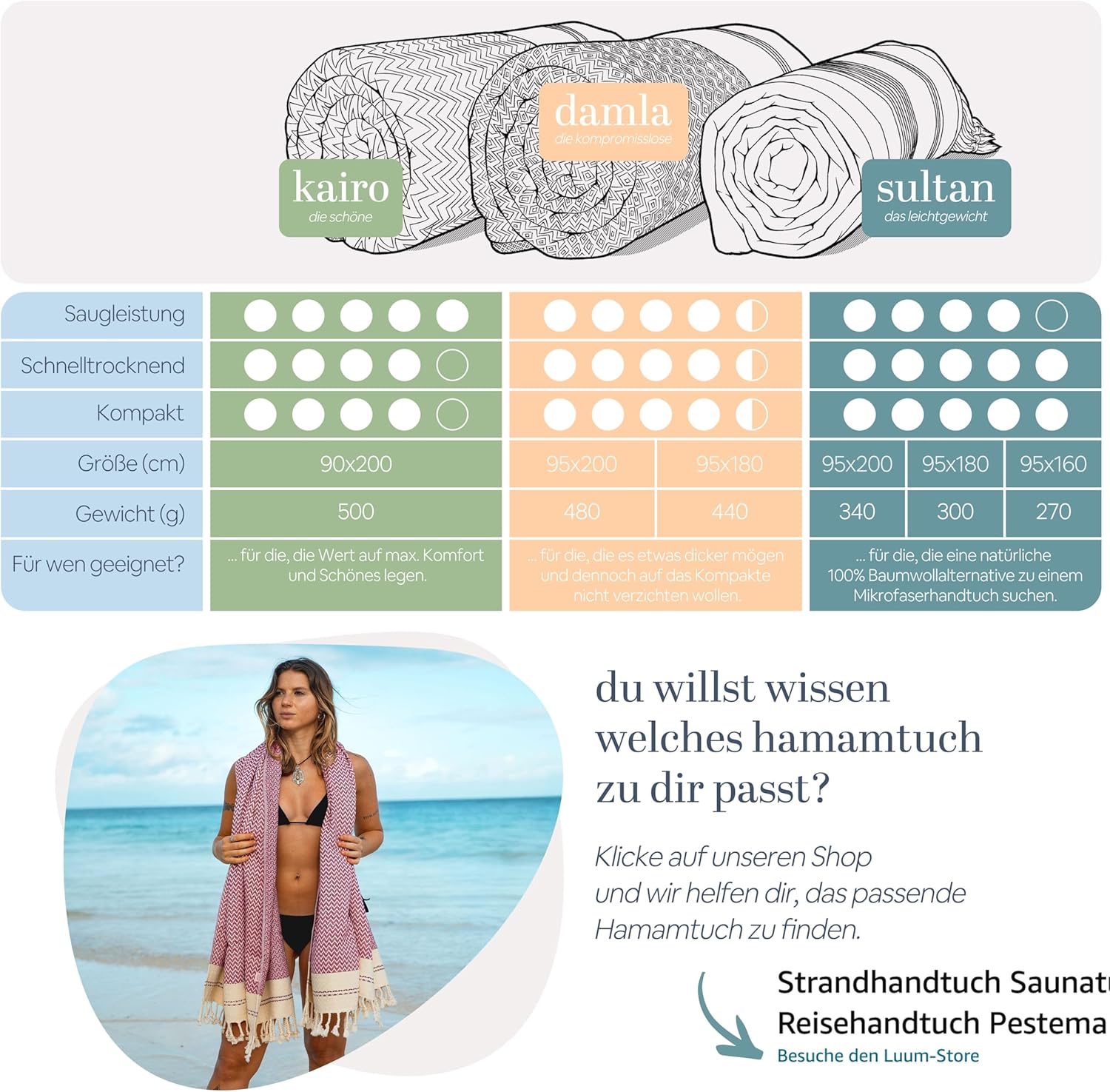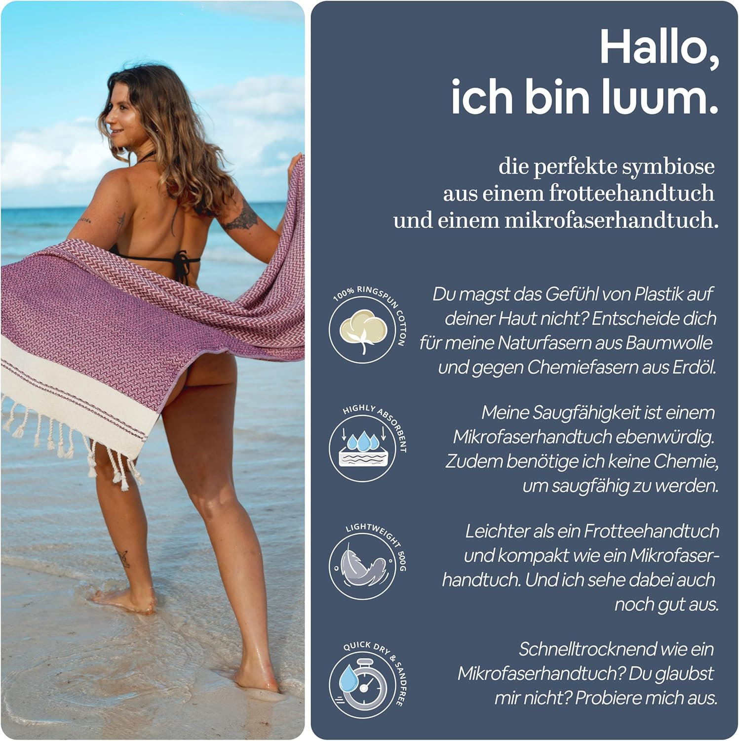 • [Моето обещание] - Моите изобретатели положиха много усилия с мен. Когато забелязаха, че много хамам кърпи съдържат полиестер, но все още се продават като 100% памук, а микрофибърните кърпи вече не са модерни, те искаха да създадат нещо специално. Сега съм такава и дойдох да остана. Здравейте, казвам се Луум и съм 100% памук.