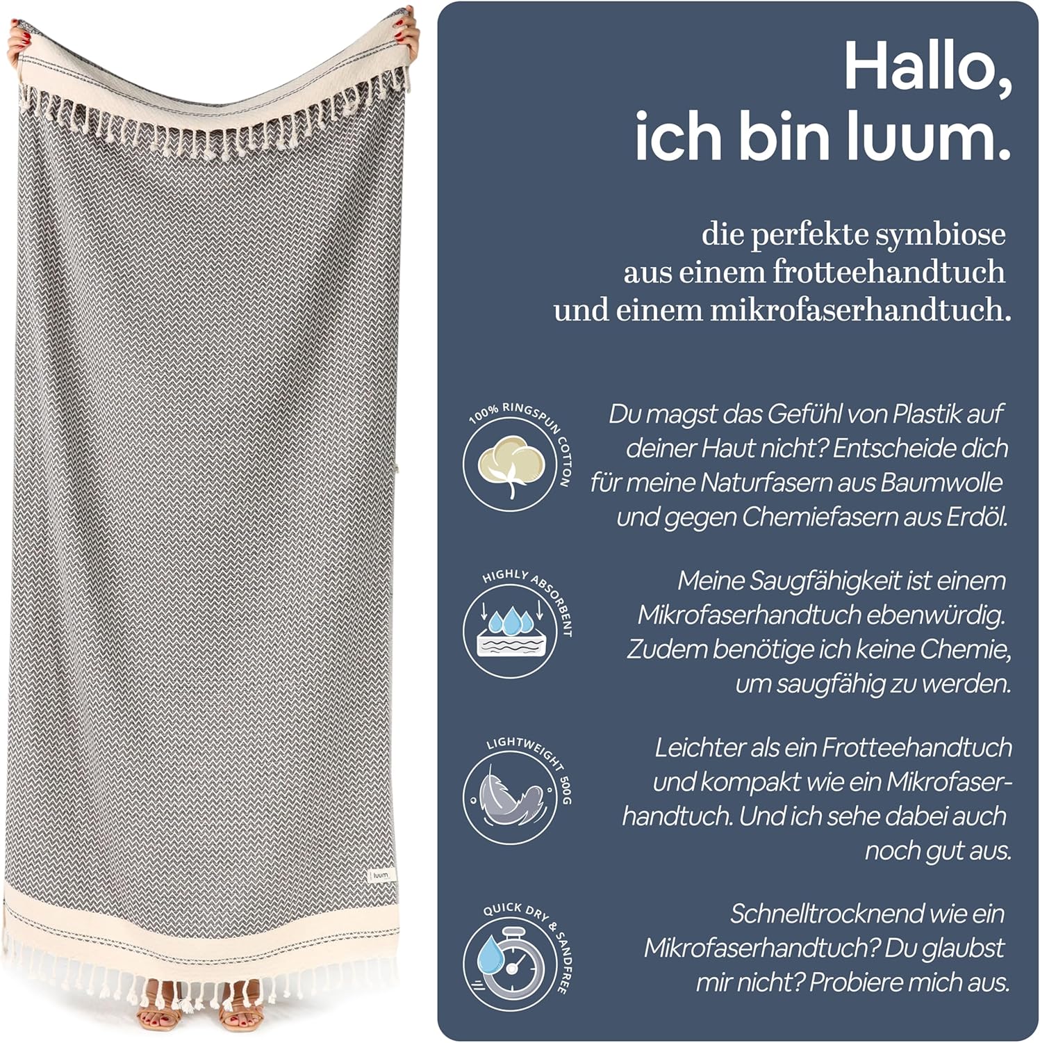 • [Моето обещание] - Моите изобретатели положиха много усилия с мен. Когато забелязаха, че много хамам кърпи съдържат полиестер, но все още се продават като 100% памук, а микрофибърните кърпи вече не са модерни, те искаха да създадат нещо специално. Сега съм такава и дойдох да остана. Здравейте, казвам се Луум и съм 100% памук.