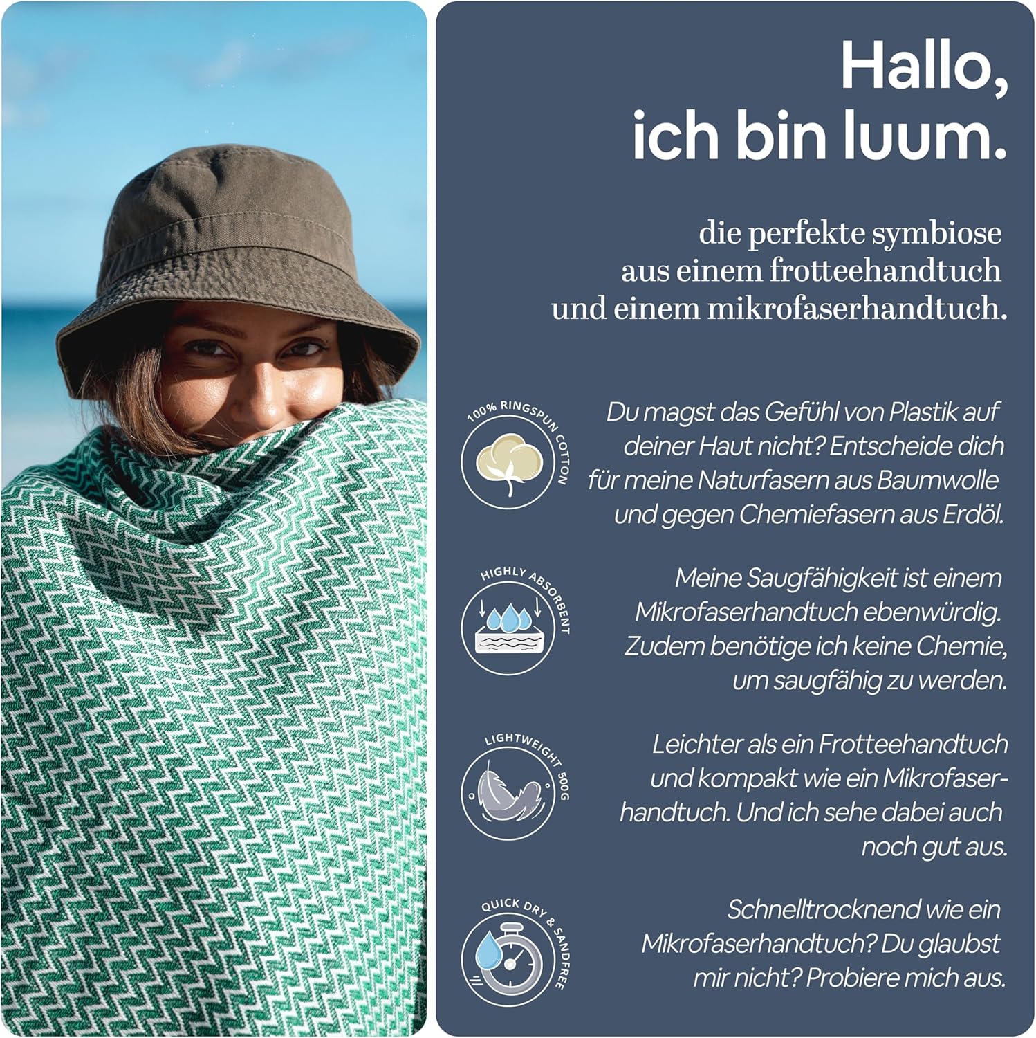 • [Моето обещание] - Моите изобретатели положиха много усилия с мен. Когато забелязаха, че много хамам кърпи съдържат полиестер, но все още се продават като 100% памук, а микрофибърните кърпи вече не са модерни, те искаха да създадат нещо специално. Сега съм такава и дойдох да остана. Здравейте, казвам се Луум и съм 100% памук.