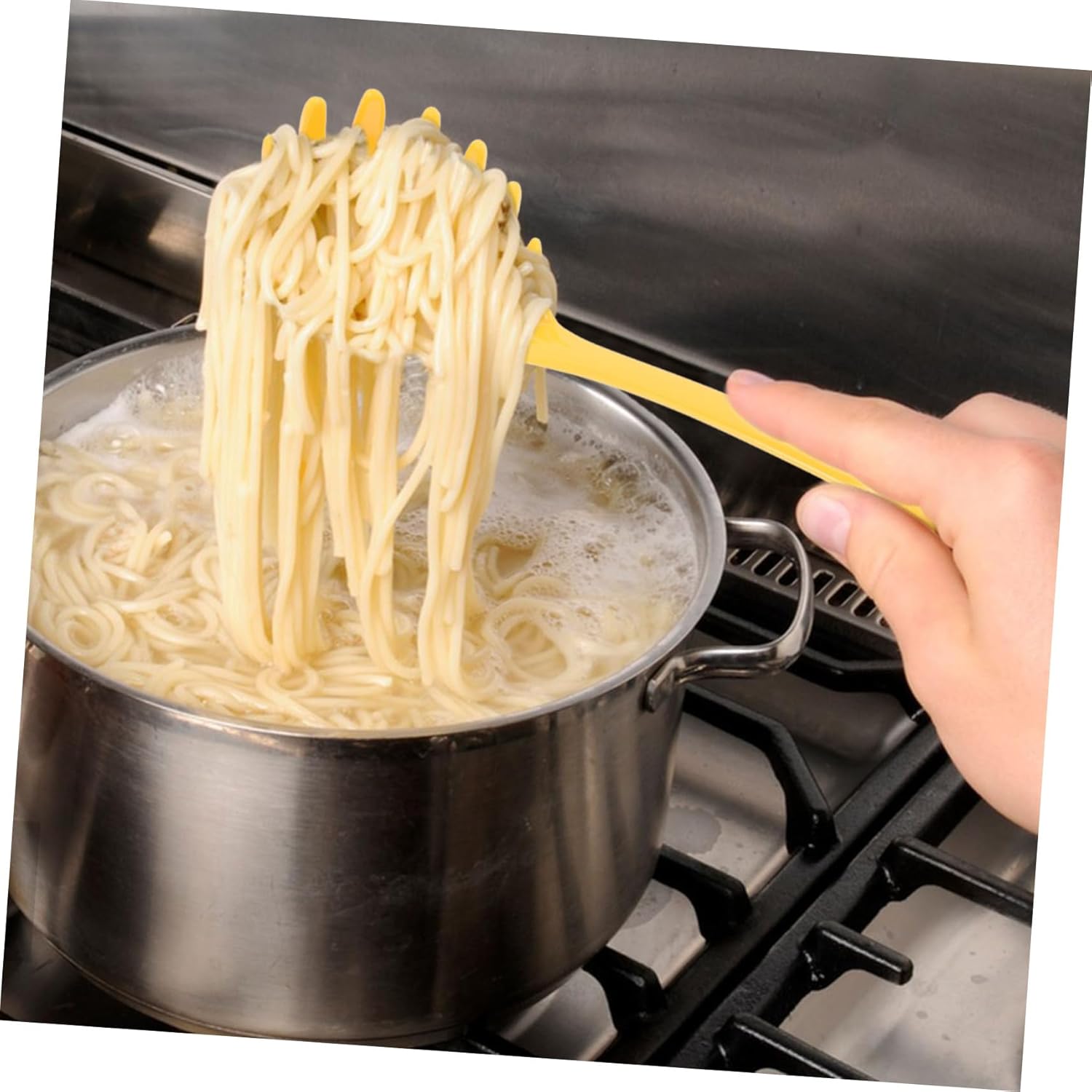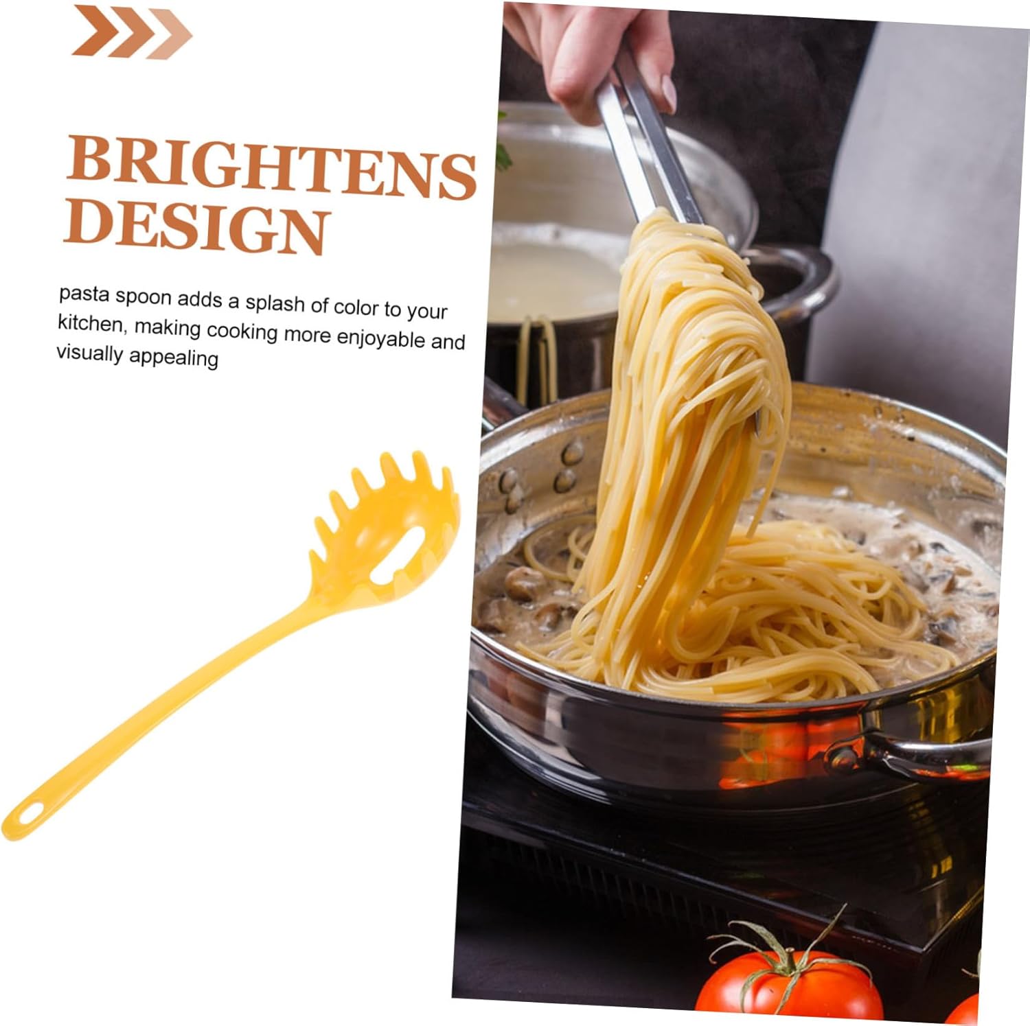 Ефективно отцеждане: Лъжицата за спагети има отвор за бързо и ефикасно отцеждане на водата, предотвратявайки проникването на храна; щипки за спагети за сервиране на паста; устройство за сервиране на паста
