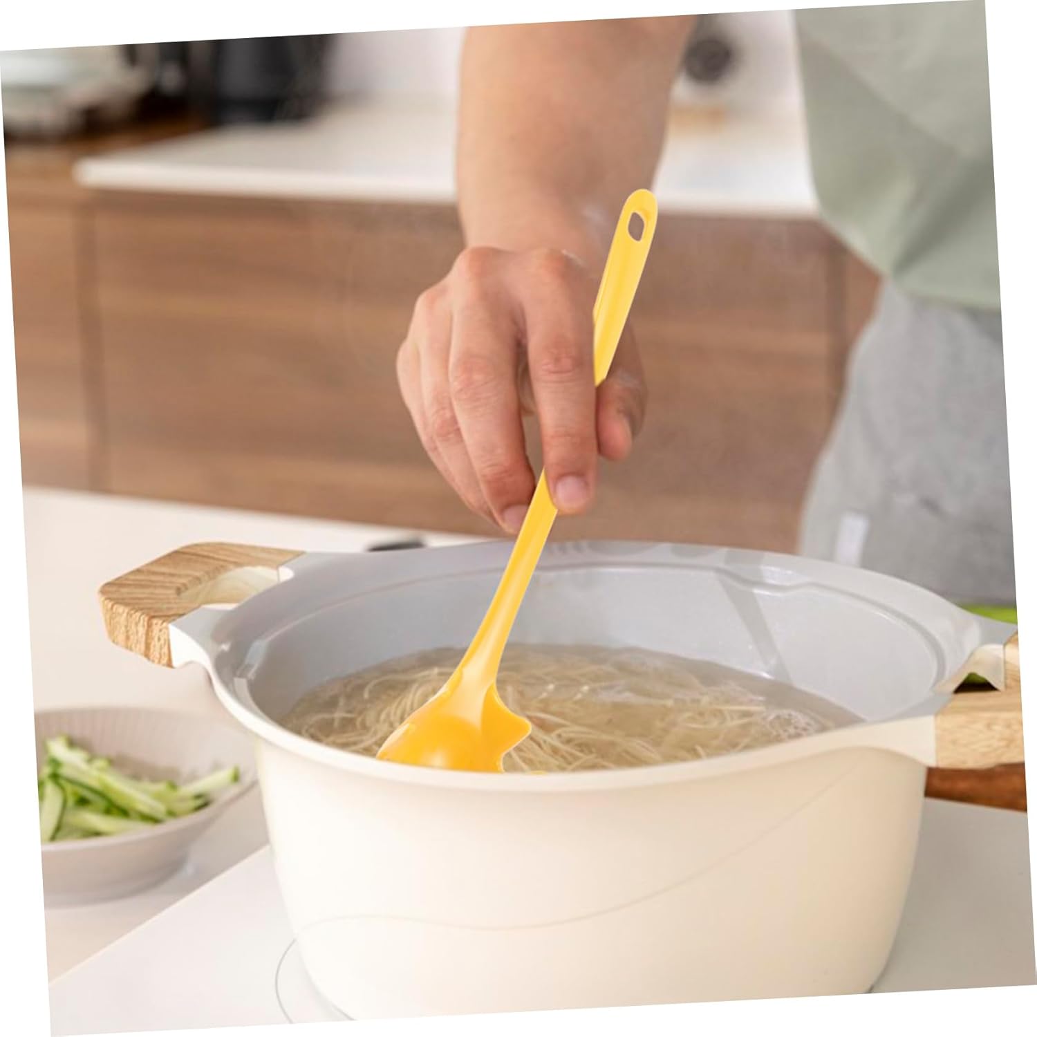 Лъжица за юфка, цедка за тенджера, японски кухненски прибори, прибор за сервиране на паста, черпак за уок, решетъчна лъжица, лъжица за цедка за юфка, лъжица за паста, прибори за уок, жълто