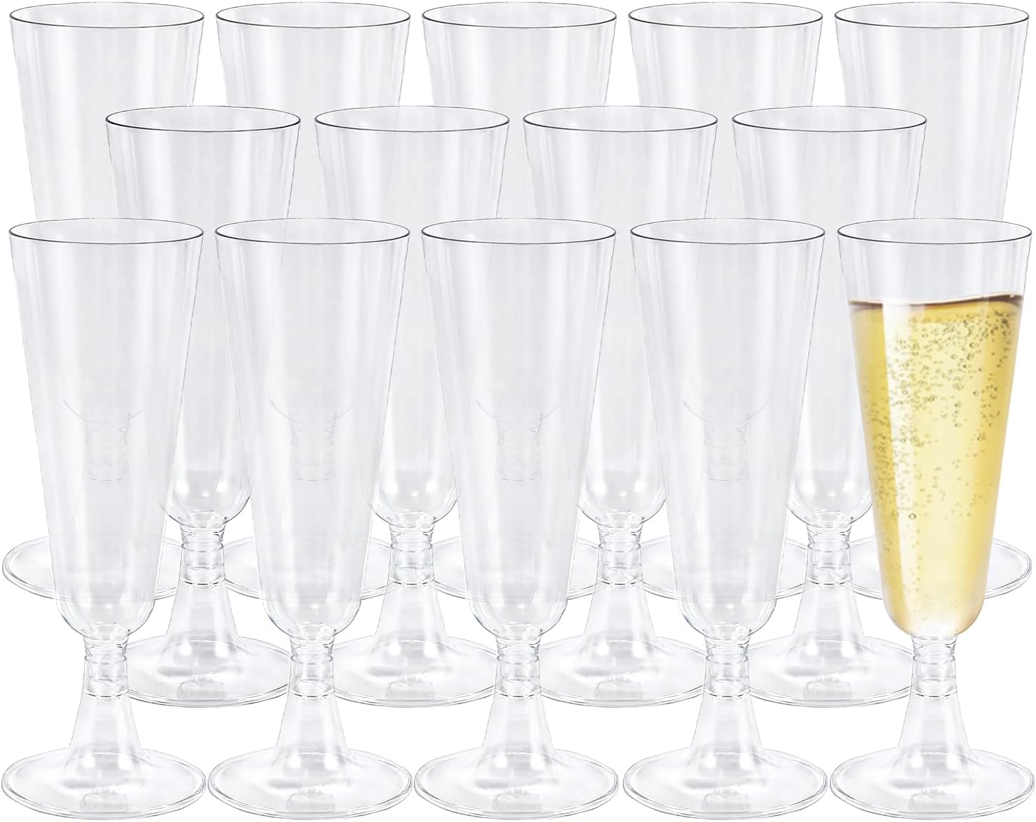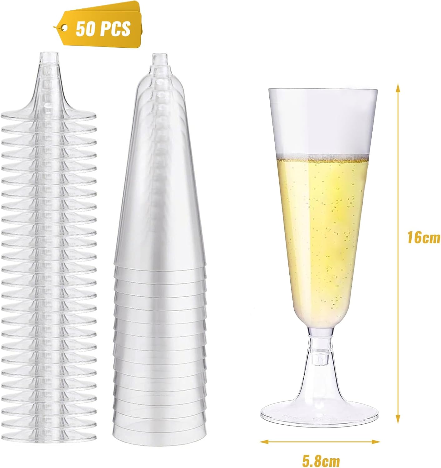• Размер и опаковка: 50 издръжливи пластмасови чаши за шампанско, всяка с вместимост 160 мл/5 унции