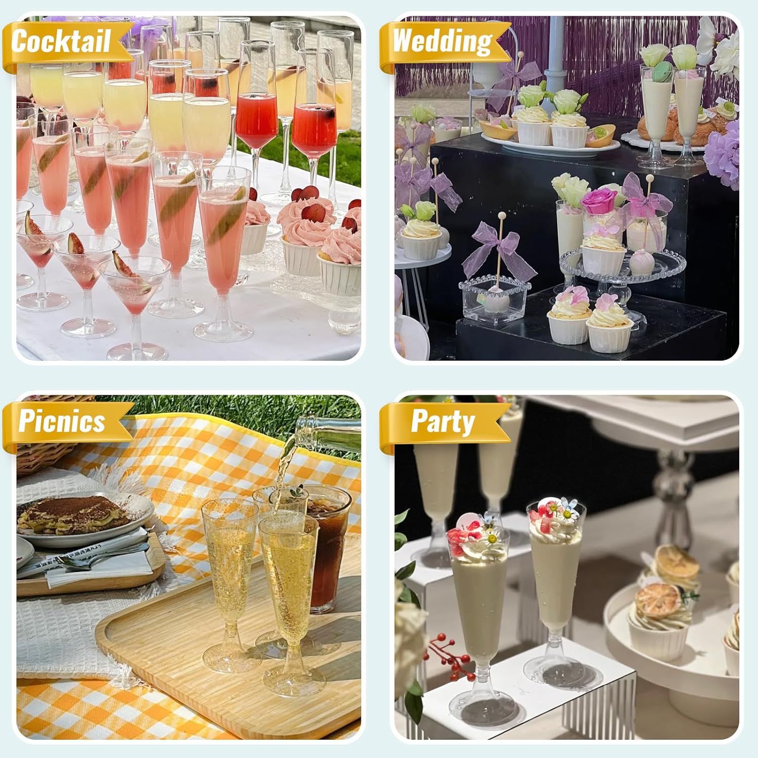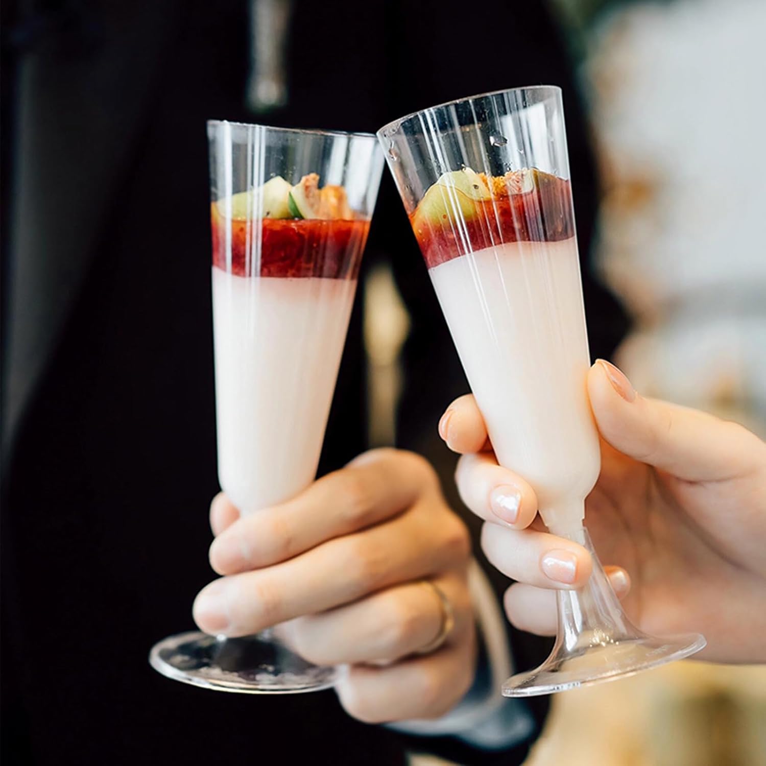 • Здрави и издръжливи: Със своя семпъл, елегантен дизайн, тези пластмасови чаши за шампанско са идеални за вино, шампанско или десерти. Те са по-безопасни от стъклените, достатъчно здрави, за да устоят на счупване, и са рентабилни.