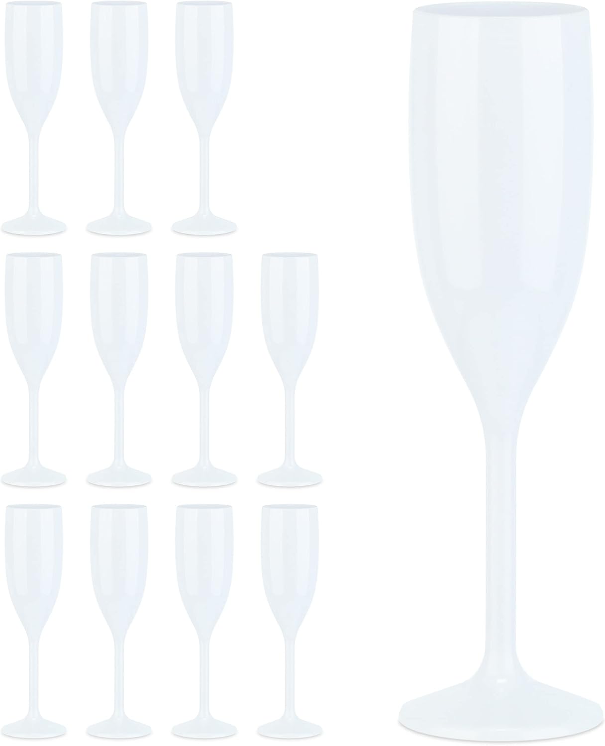 Този комплект от 12 пластмасови чаши за шампанско ви осигурява всичко необходимо за следващото ви парти! Тези нечупливи чаши са идеални за безстресово празненство, тъй като няма да се налага да се притеснявате за счупено стъкло. Чашите за просеко са подходящи за много поводи: новогодишни наздравици, рождени дни и сватби, приеми с шампанско на събития или дори къмпинг. Благодарение на здравата си конструкция, тези висококачествени пластмасови чаши за шампанско могат да се използват многократно.
