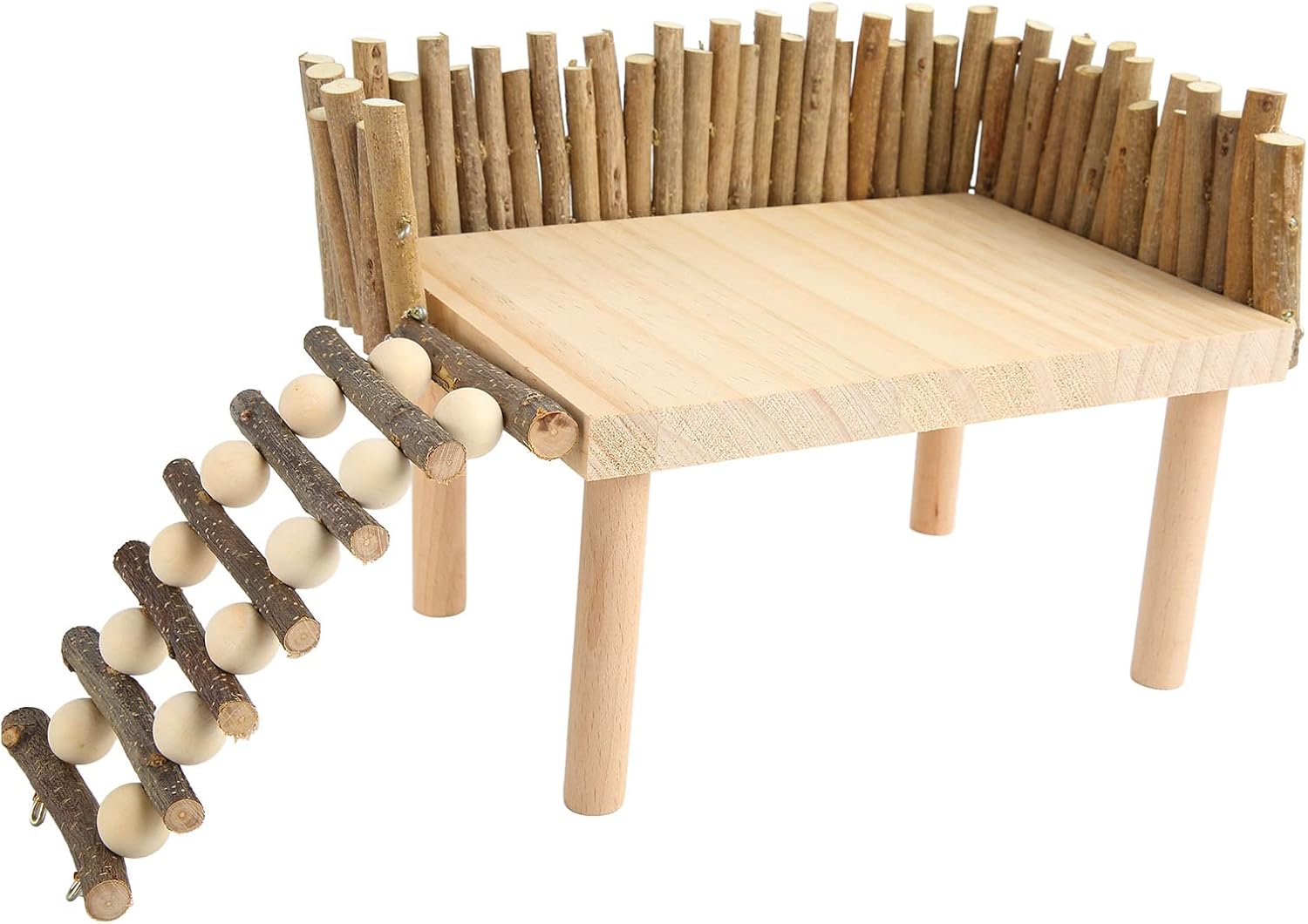 Платформа за катерене за хамстери, аксесоари за катерене, площадка за малки домашни любимци, дървена катерушка за хамстери с ограда за папагали, джербили, катерици, плъхове, хамстери, златни мечки, птици (универсален тип)