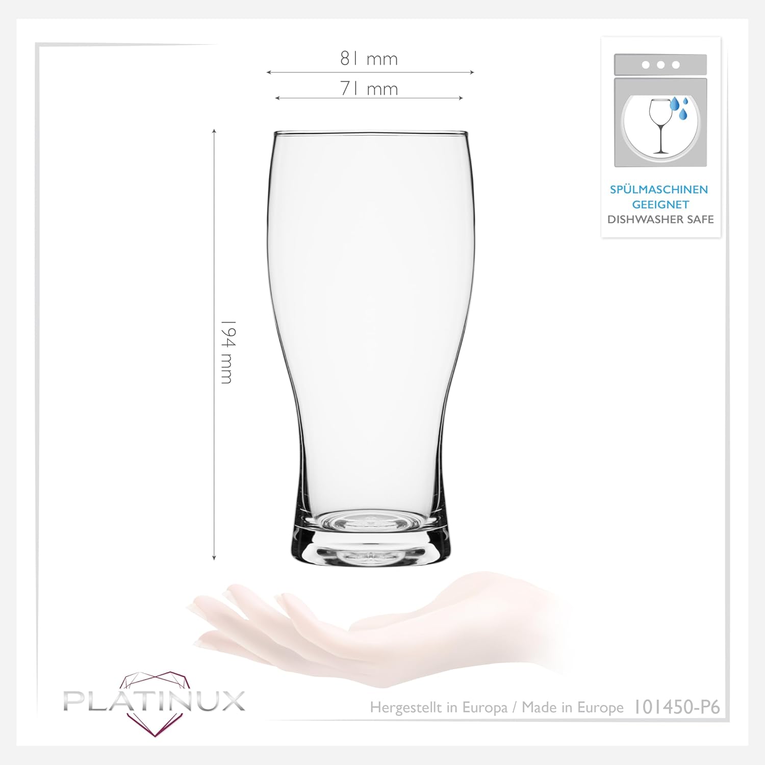 За върховно бирено изживяване! ДЕТАЙЛИ: Ширина: 8,1 см Височина: 19,4 см Диаметър: 7,1 см Общ обем: 640 мл Препоръчително ниво на пълнене: 500 мл Тегло: 283 г (на чаша) Цвят: Прозрачен, безцветен Материал: Стъкло Благодарение на универсалната си форма, тези бирени чаши са идеални за сервиране на разнообразие от бири. Тези парти чаши са задължителни за всяко парти. Те са и истински акцент на барбекюта , публични представления, ловни фестивали , клубни тържества , летни партита, сватби , рождени дни и други събития . Подходящи са и за търговска употреба в: барове , ресторанти , кафенета и кетъринг. Комплектът включва 6 чаши, които могат да се мият в съдомиялна машина. (Декорациите, показани на снимките, не са включени.) Моля, свържете се с нас, ако имате въпроси; ще се радваме да ви посъветваме и очакваме с нетърпение да се свържете с нас.