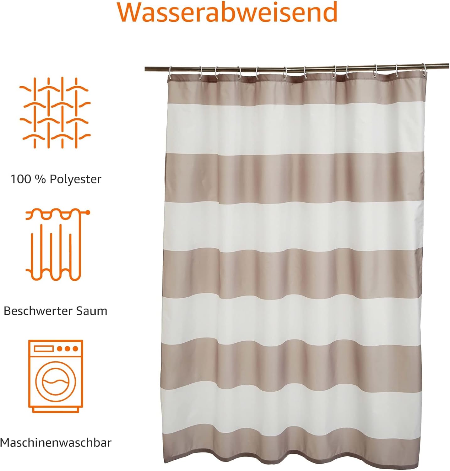 Тази водоустойчива завеса за душ от AmazonBasics улавя всички водни пръски по време на душ или вана. Завесата за душ може да се използва самостоятелно или като защитна вътрешна подплата за платнена завеса за душ, като същевременно е здрава и осигурява повече уединение. Обикновеният бял дизайн на завесата за душ лесно се вписва във всеки съществуващ декор.