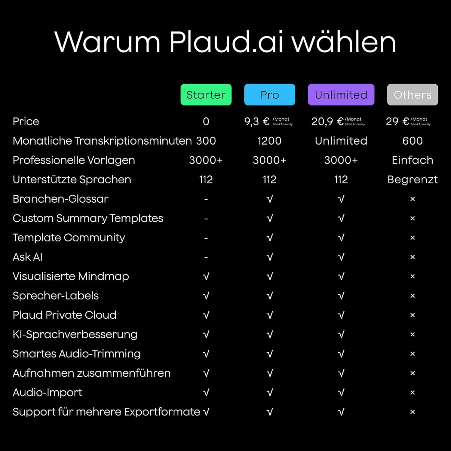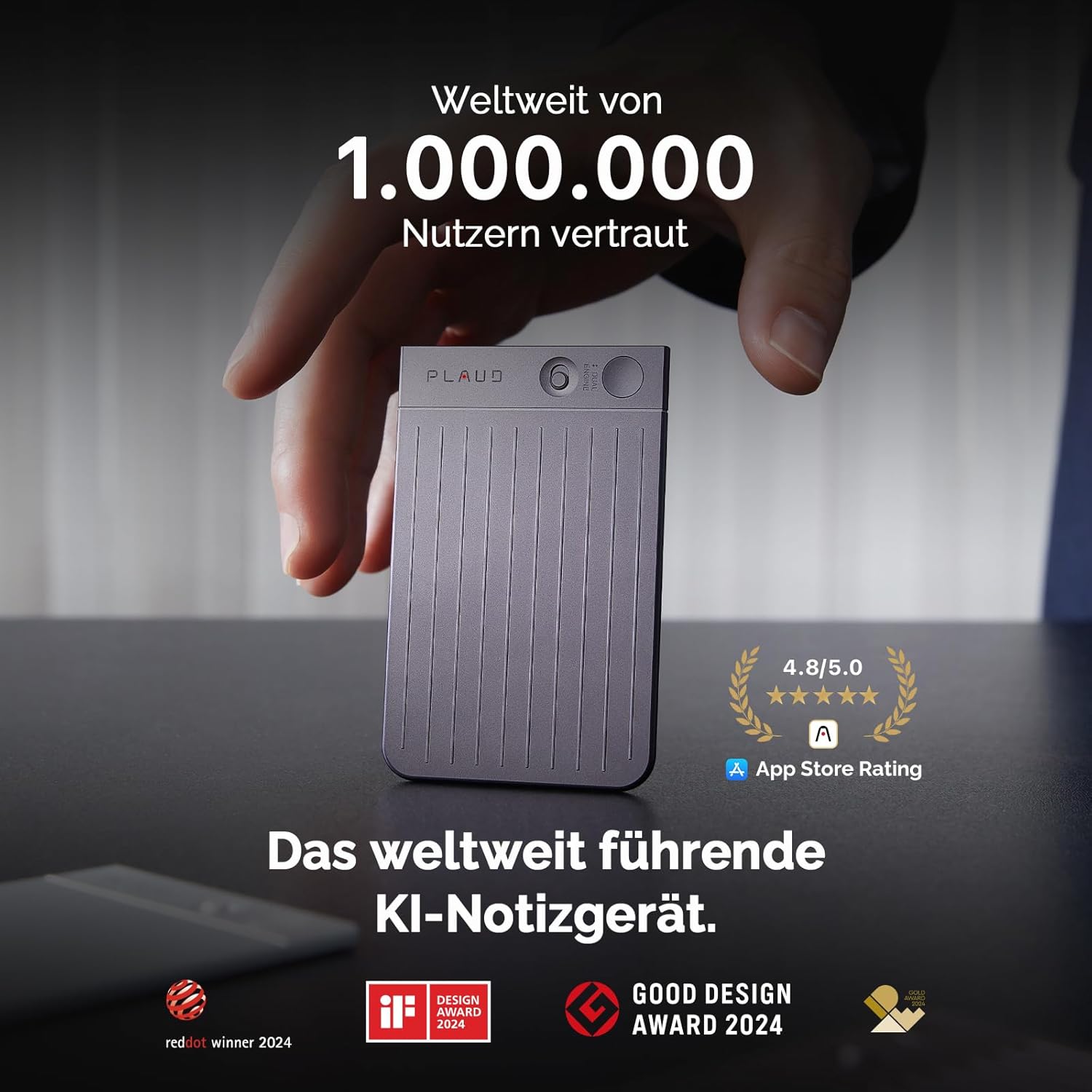 • Безплатен начален план „Всичко включено“: устройство Plaud Note, магнитен калъф, магнитен пръстен и кабел за зареждане. Всяко устройство Plaud AI Note се предлага с безплатен начален план (300 минути транскрипция на месец). Надстройте до Pro или Unlimited по всяко време за повече минути транскрипция и разширени възможности с изкуствен интелект.