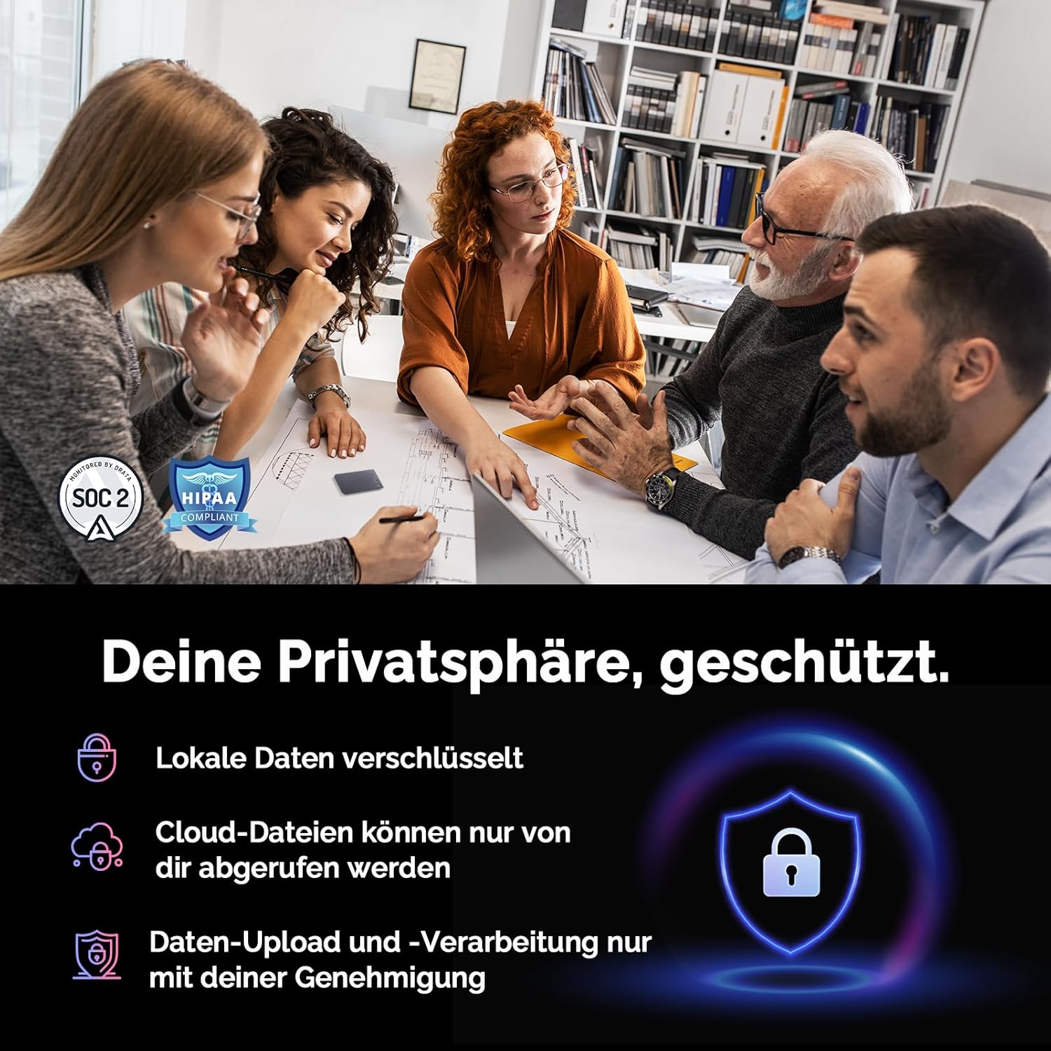 • Сигурност на данните. Рекордерът Plaud е проектиран да отговаря на най-високите стандарти за сигурност, като SOC 2, HIPAA, GDPR и EN18031. Всеки запис и забавление са безопасни и защитени.