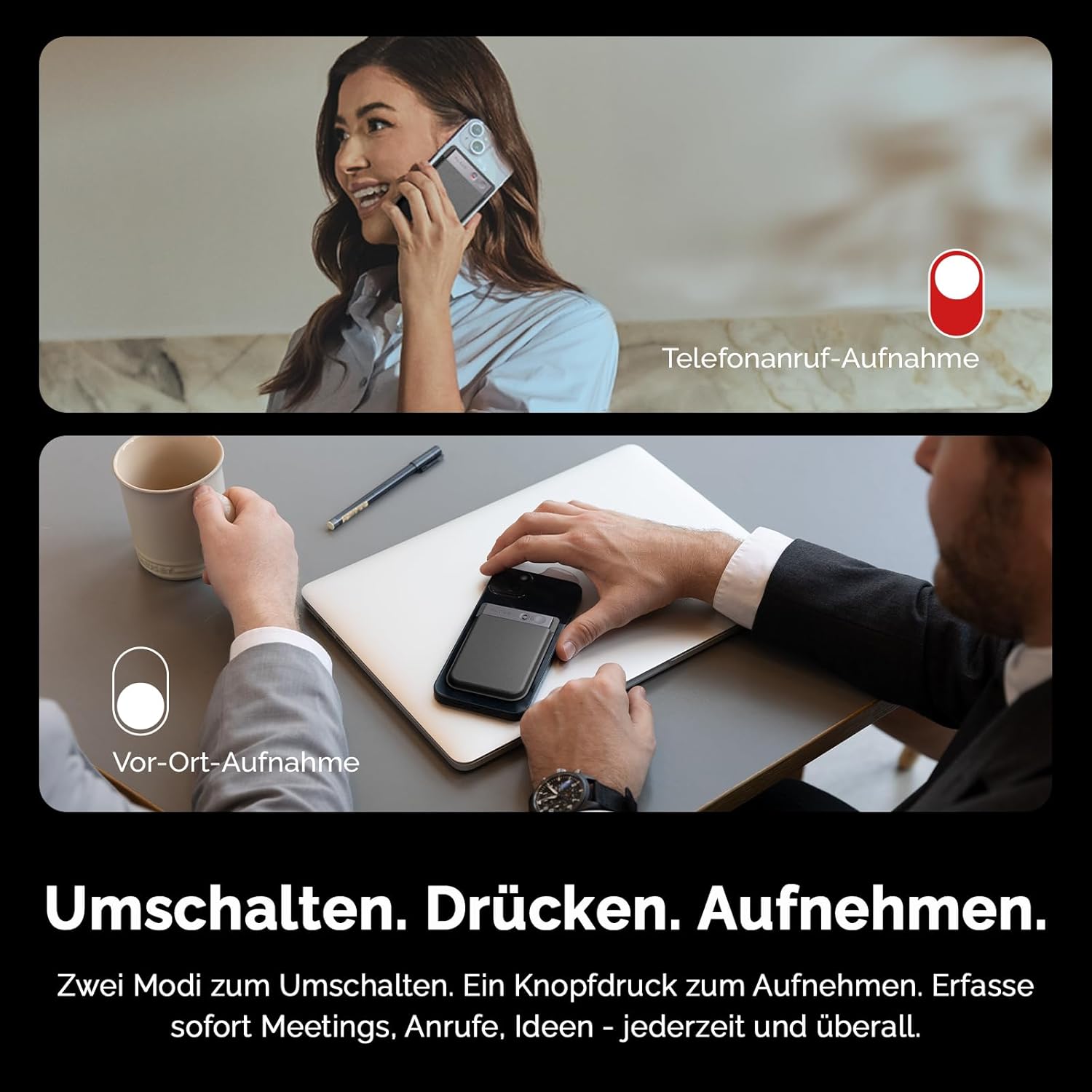 • Двоен режим на запис: Превключвайте между режими на запис за телефонни разговори и лични разговори, за да заснемете всеки детайл без разсейване.