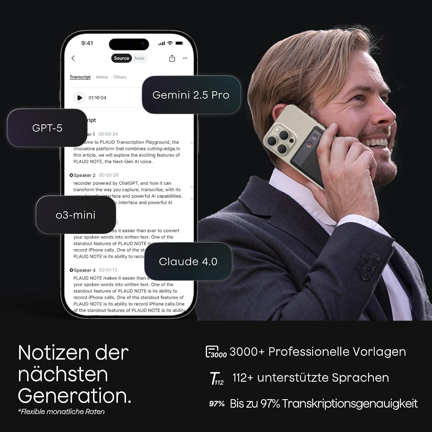 • Plaud Intelligence: Диктофонът с изкуствен интелект осигурява транскрипция на 112 езика с етикети на говорещите и персонализируем речник. Генерирайте многоизмерни резюмета с над 3000 шаблона, ментални карти и безпроблемна интеграция с работния процес.