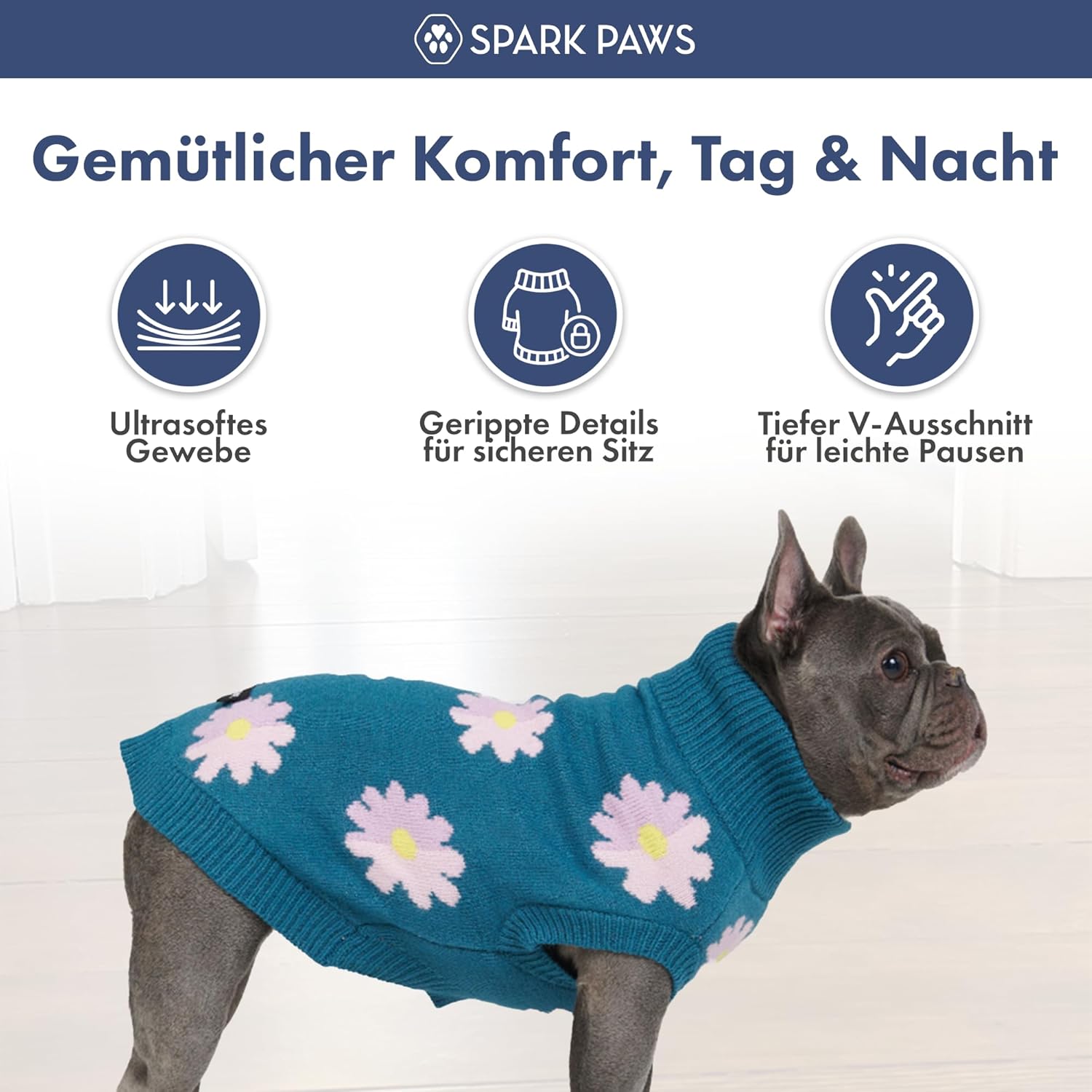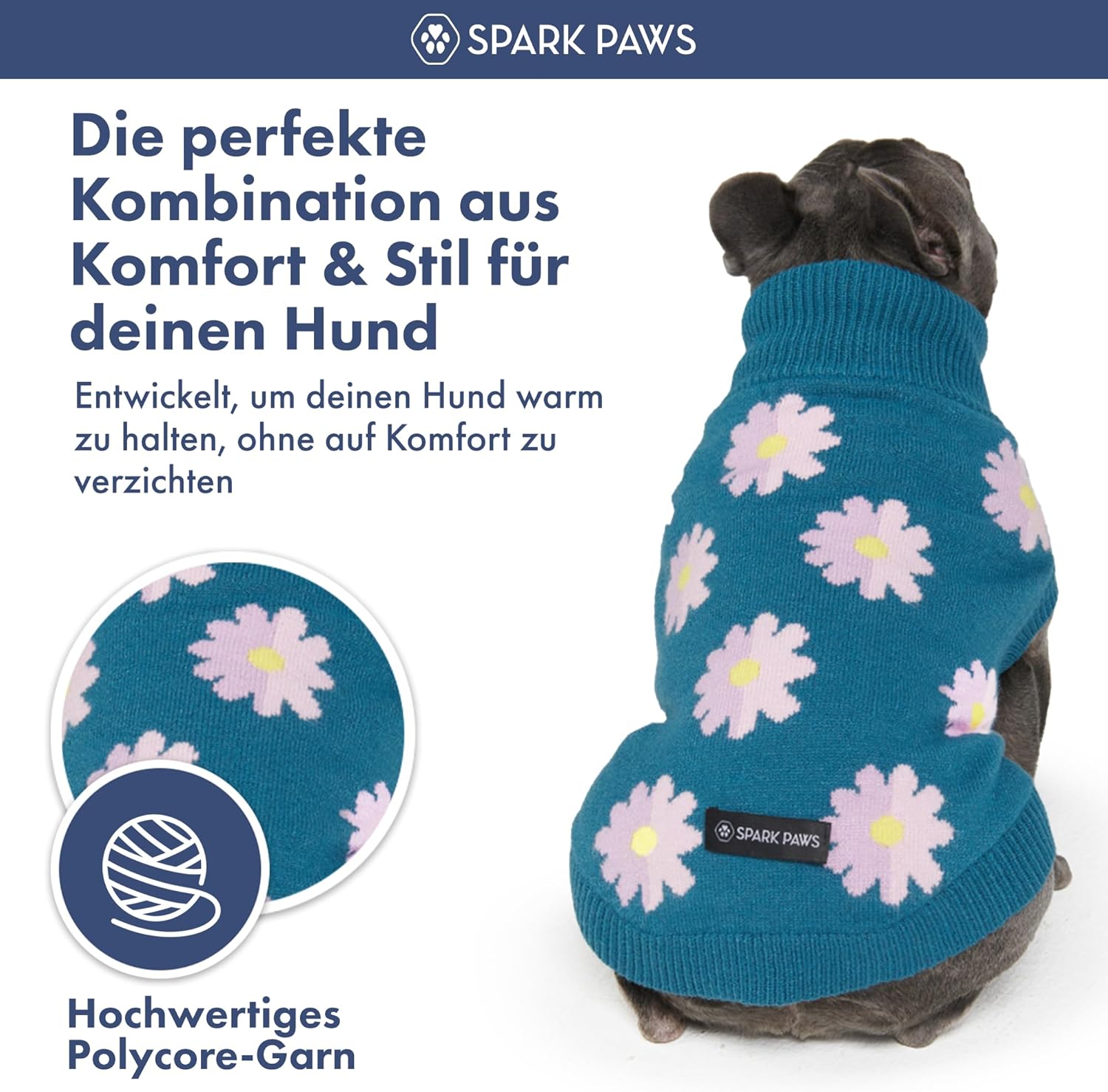 Плетена пуловер за кучета Spark Paws - Ултрамек, топъл зимен пуловер за малки, средни и големи кучета - Еластичен пуловер за френски булдог, питбул, едри и мъжки кучета (цвете, размер S)