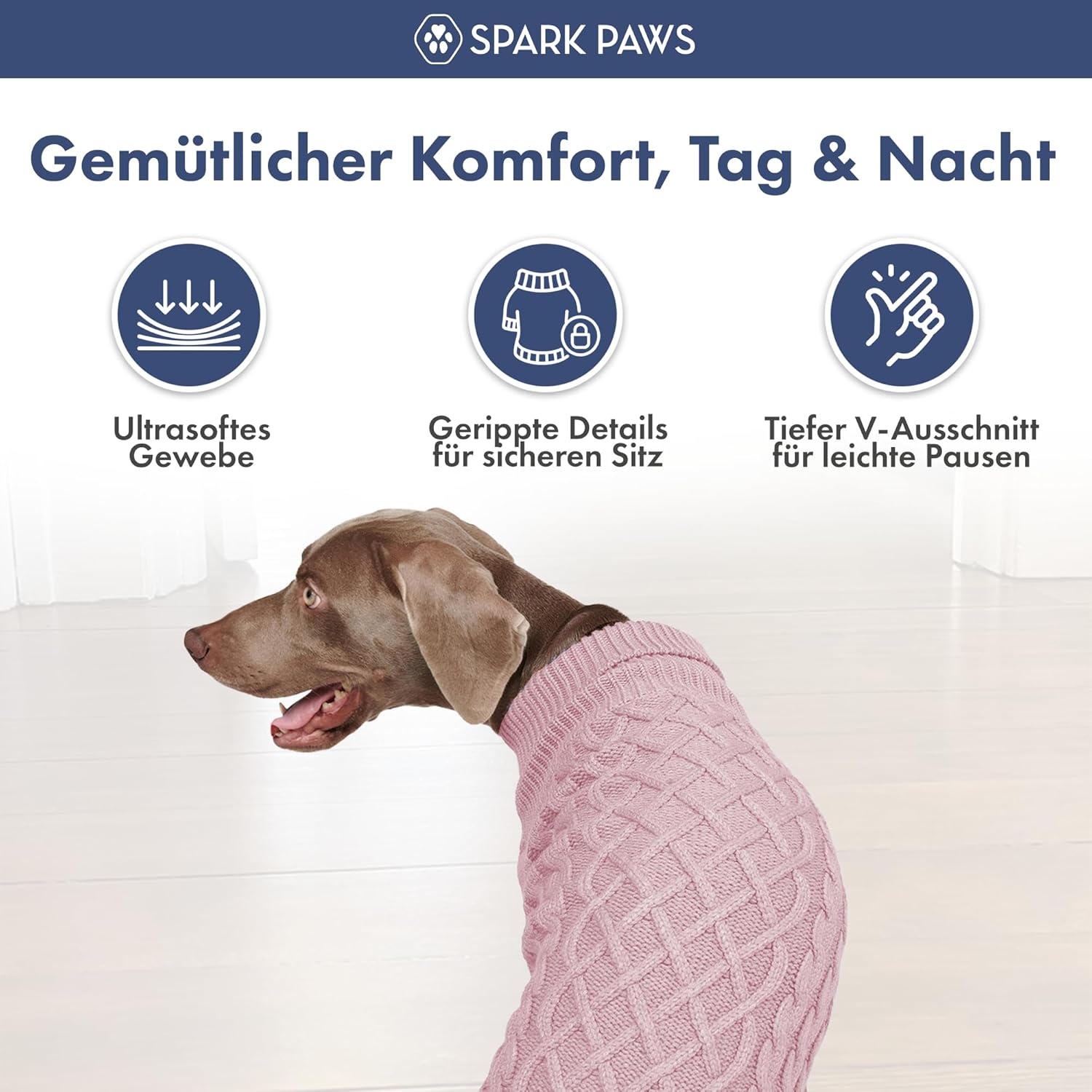 Плетено яке за кучета Spark Paws - Ултрамек, топъл зимен пуловер за малки, средни и големи кучета - Еластичен пуловер за френски булдог, питбул, едри кучета и мъжки (розов плетен, 3XL)