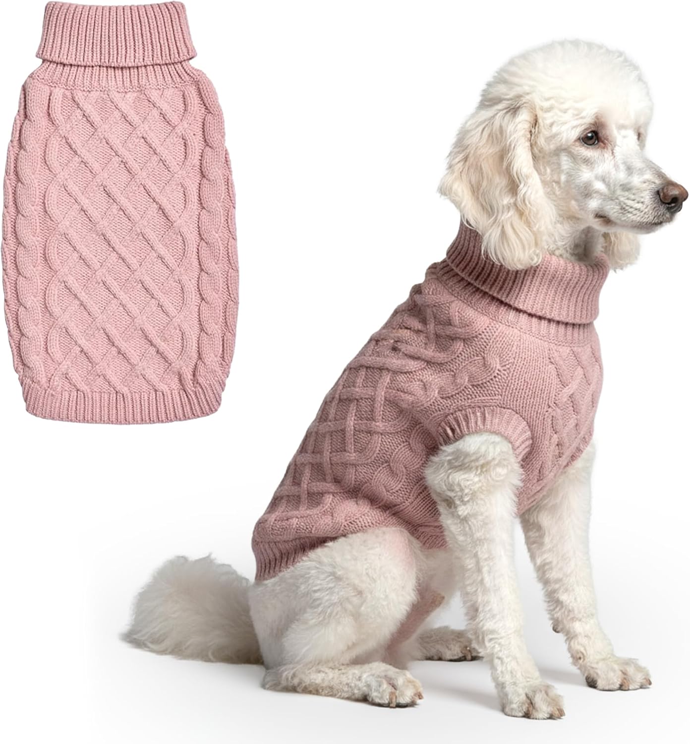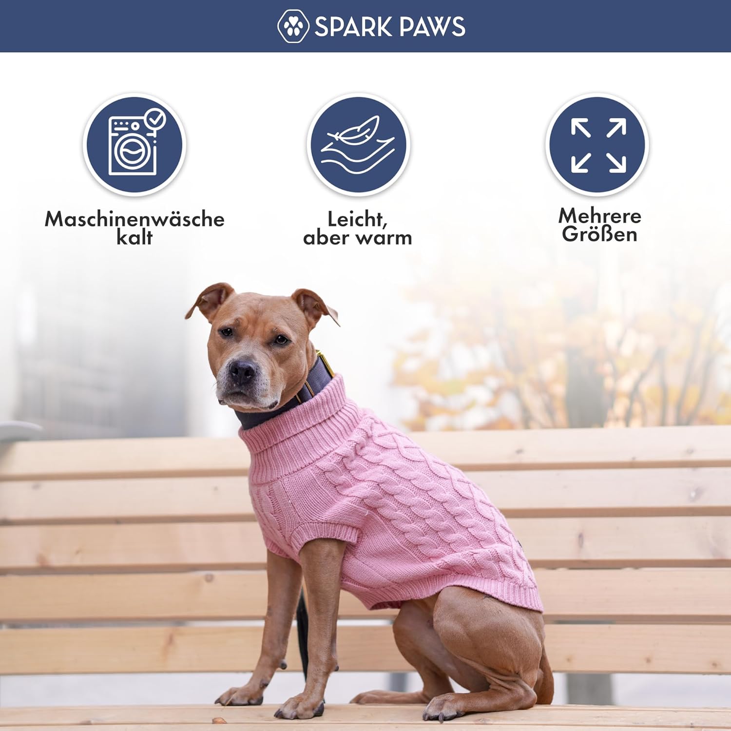 Плетено яке за кучета Spark Paws - Ултрамек, топъл зимен пуловер за малки, средни и големи кучета - Еластичен пуловер за френски булдог, питбул, едри кучета и мъжки (розов плетен пуловер, L)