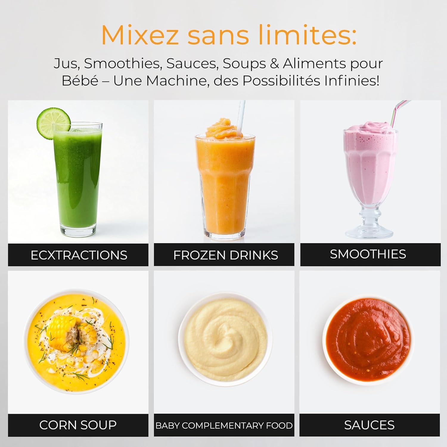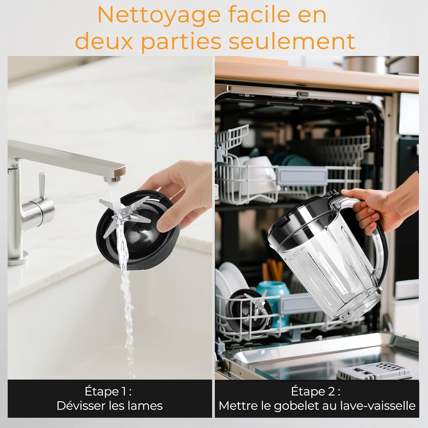 • Мощен 700 W блендер с двускоростно управление (2 регулируеми нива) и импулсна функция раздробява лед и смесва съставките равномерно. Ножовете от неръждаема стомана позволяват бързо и равномерно смесване за здравословни напитки за секунди.