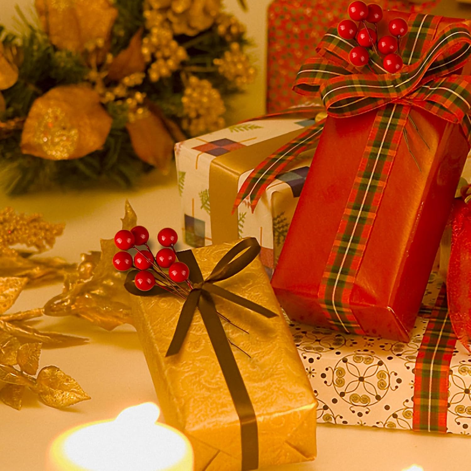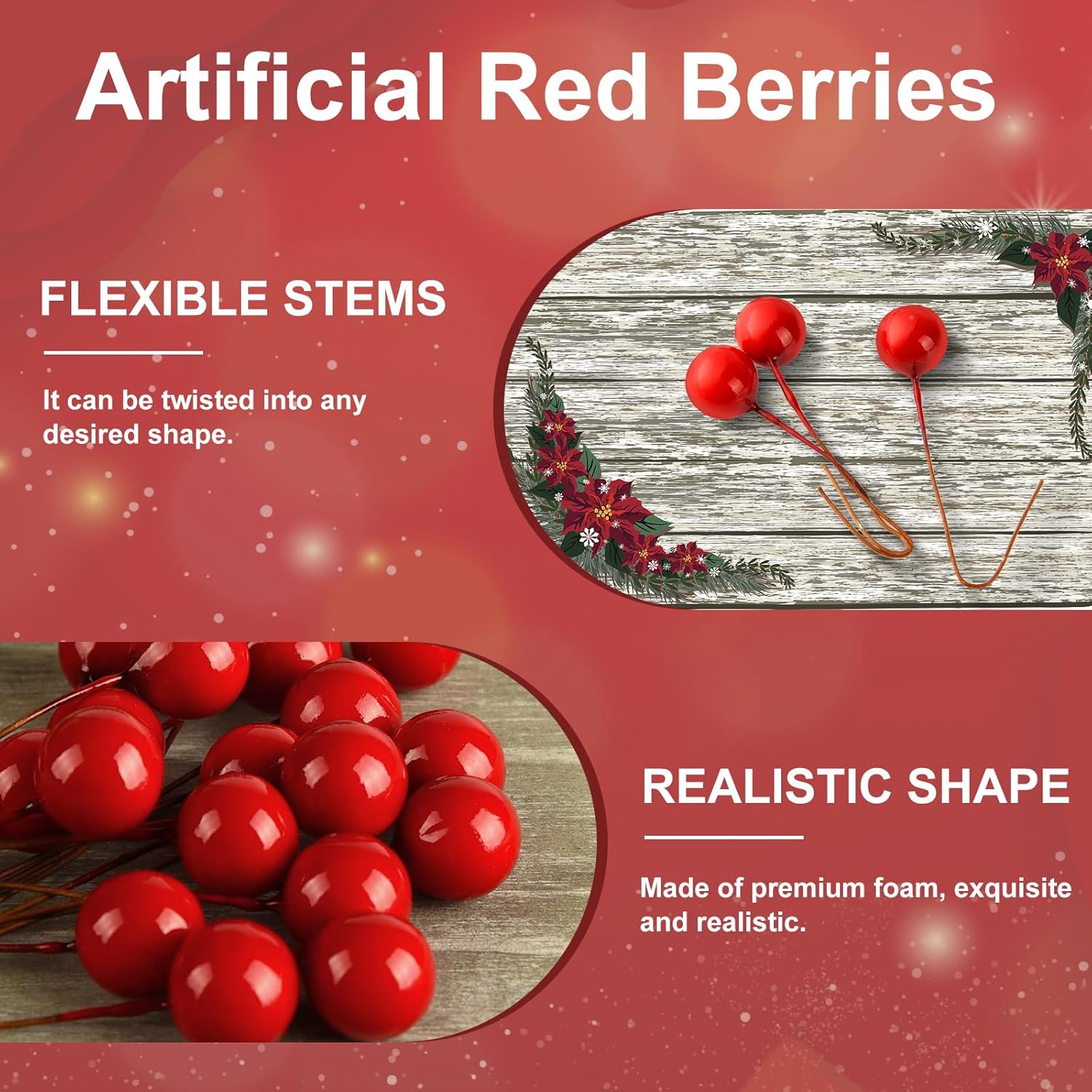 Червените плодове от джел са идеални за украса на вашата коледна елха, картички, венци „Направи си сам“, занаяти, сватбени подаръци, фото реквизит или украса за празнично парти.