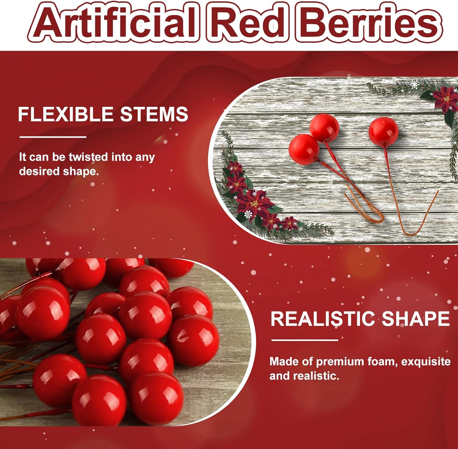 Червените плодове от джел са идеални за украса на вашата коледна елха, картички, венци „Направи си сам“, занаяти, сватбени подаръци, фото реквизит или украса за празнично парти.