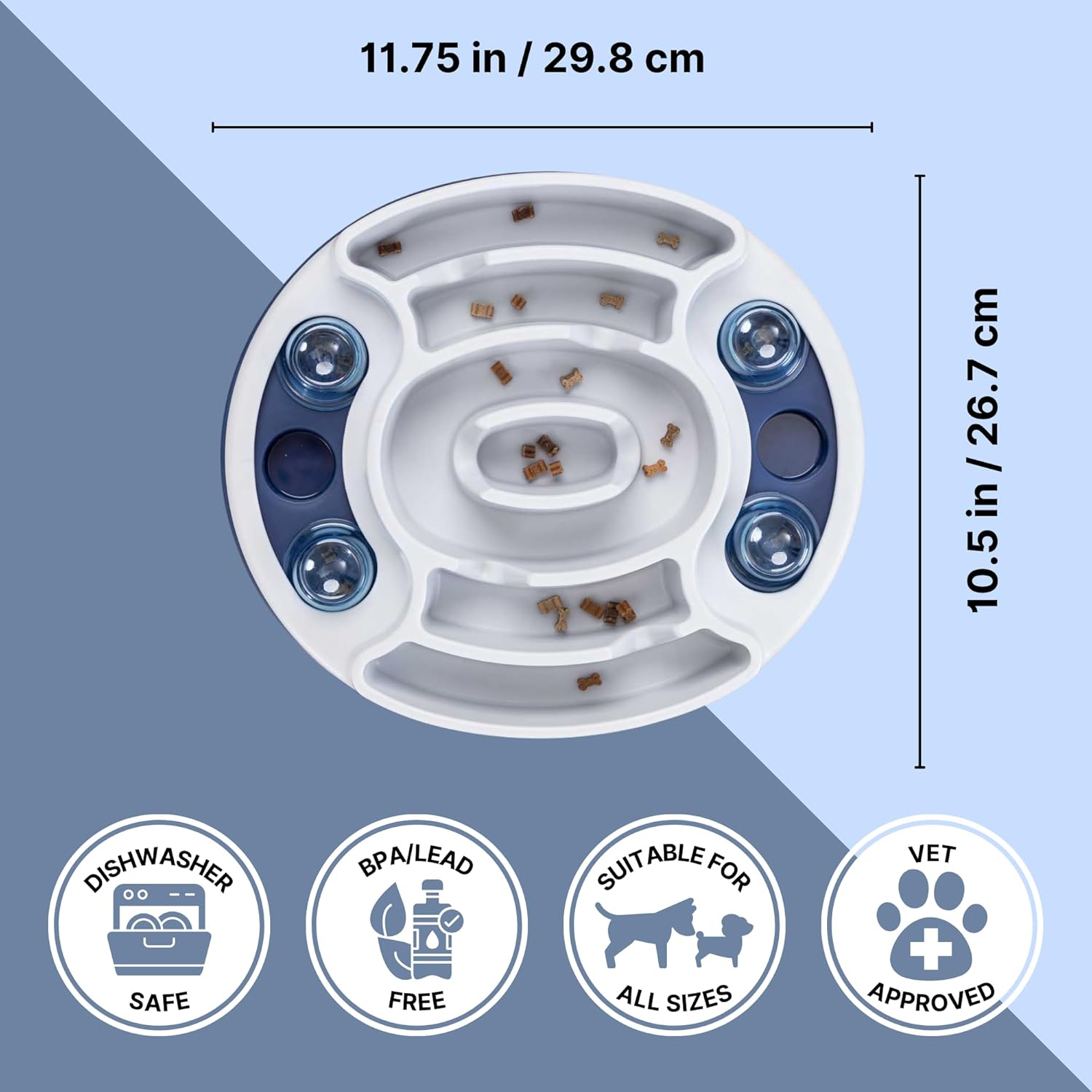 Изключително важно е играчката да отговаря на теглото и размера на вашето куче. Ако имате по-малко куче, предпочитайте игри със съответно по-малки конуси и вдлъбнатини. Уверете се, че играчката не носи риск от нараняване и че няма малки части, които могат да бъдат погълнати. Лесни за почистване играчки се препоръчват, особено за кучета, които се лигавят. Нашите пластмасови стратегически игри почти всички са подходящи за съдомиялна машина.