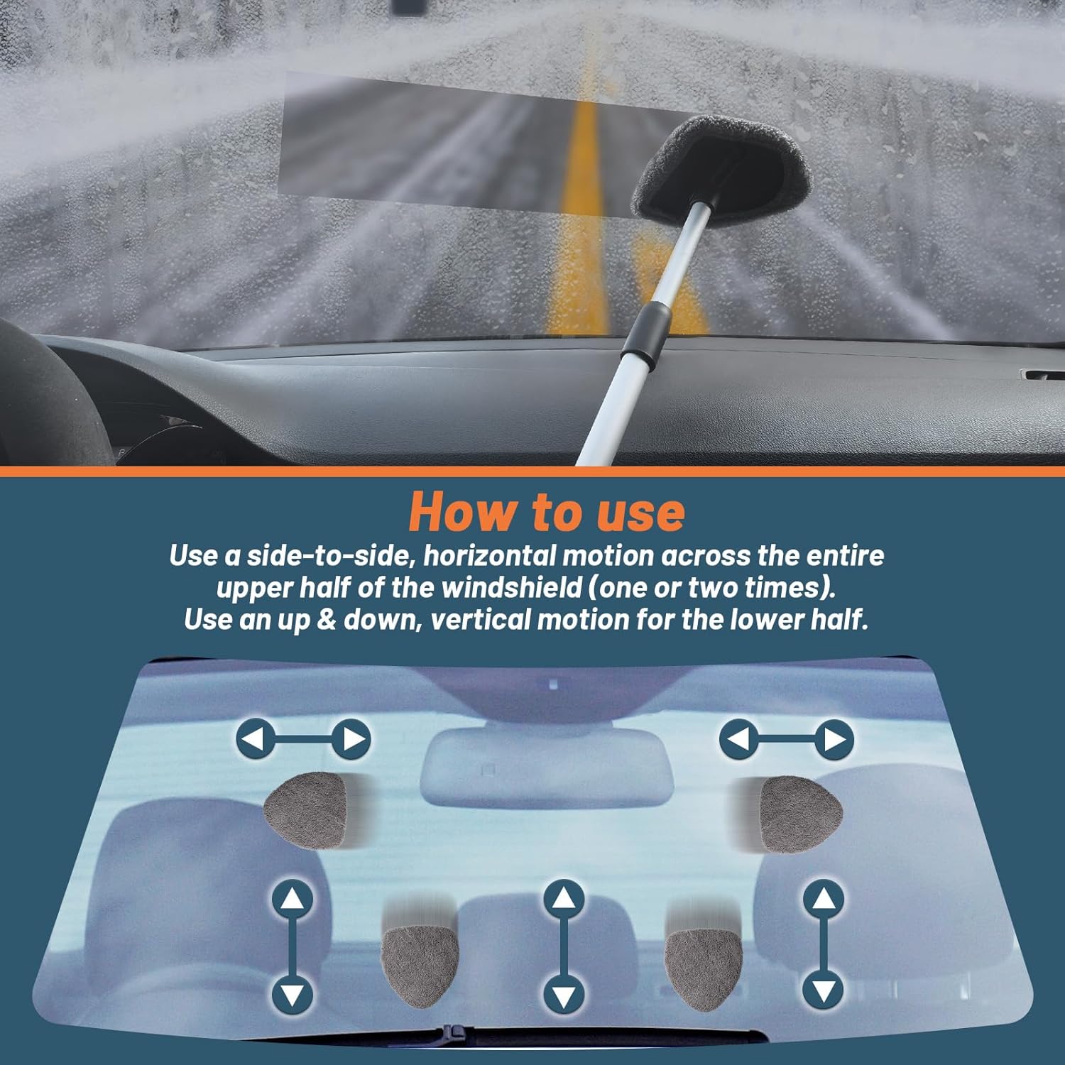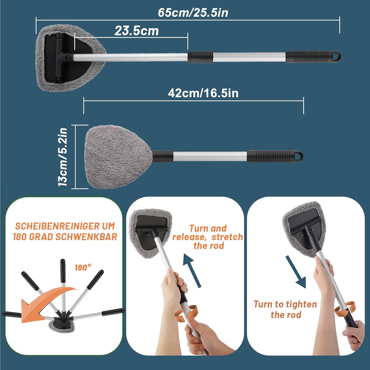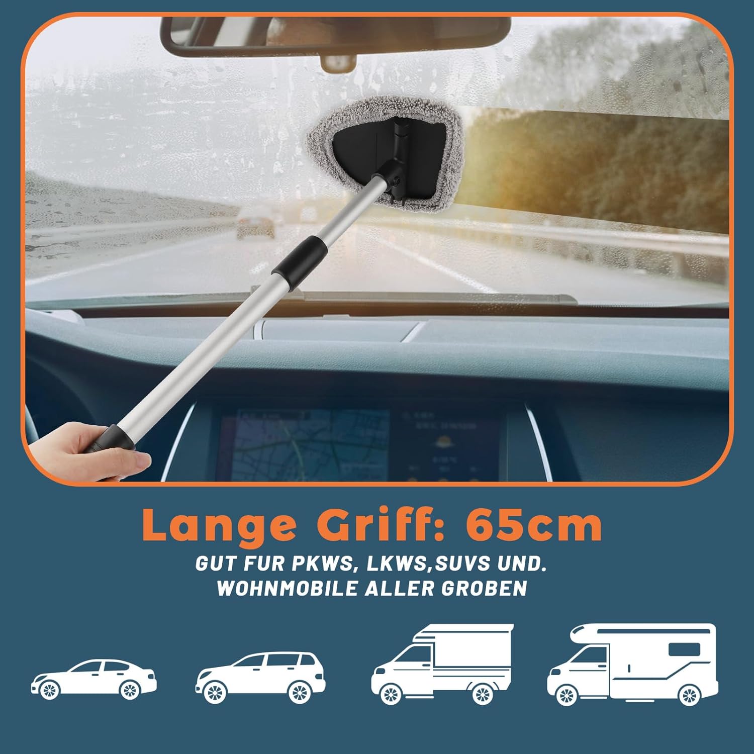 • Почистваща дръжка за предно стъкло с дължина 65 см: алуминиевата разтегателна дръжка може да се удължи от 42 см до 65 см, за да почистите лесно цялото предно стъкло от шофьорската седалка, без да се налага да се местите. Заключва се здраво на място, сваля се и е неплъзгаща.