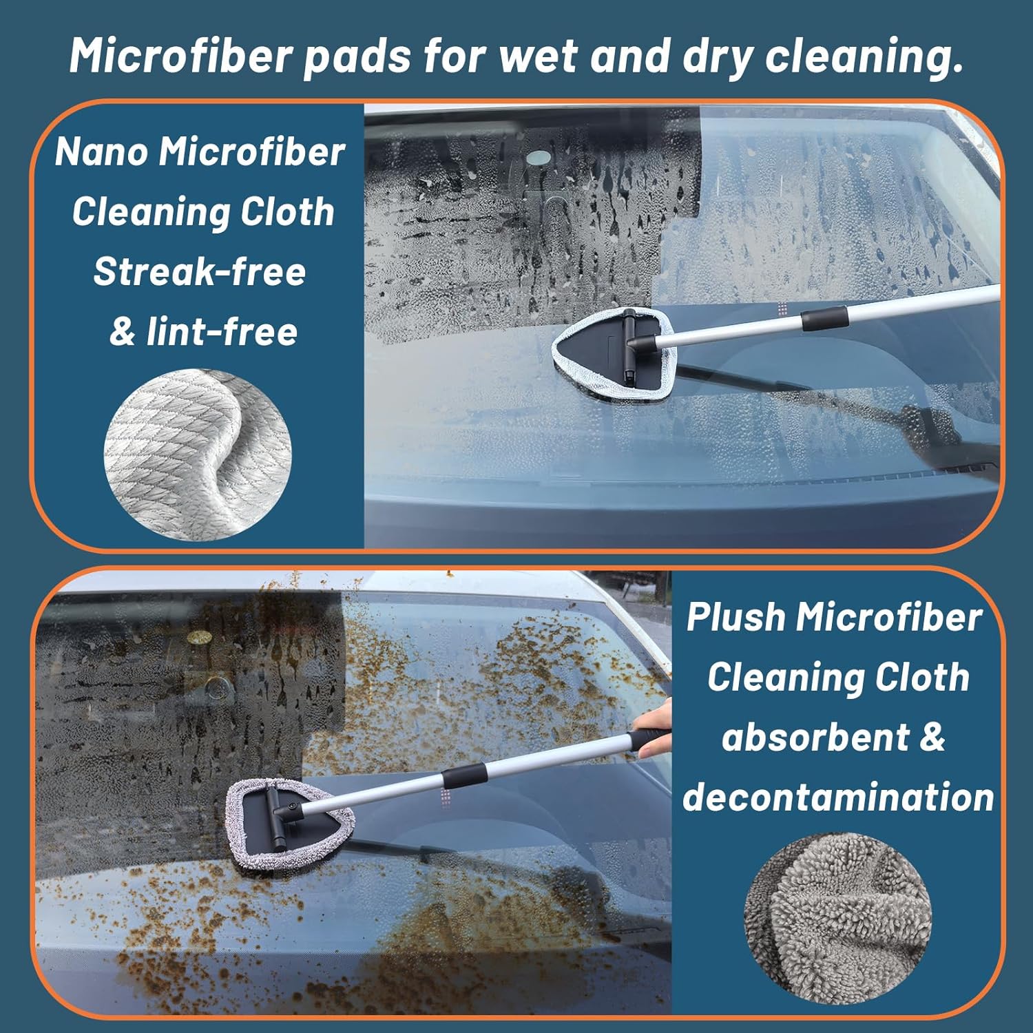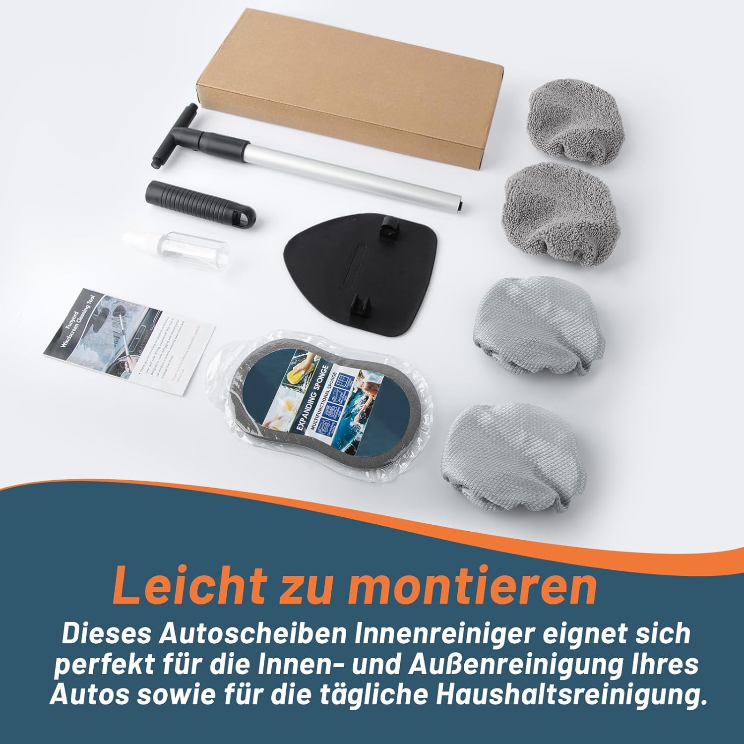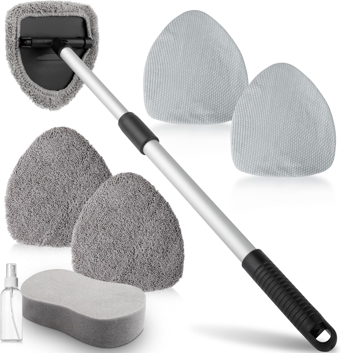 Почистващ препарат за автомобилни стъкла, 65 см почистващ препарат за интериор на автомобилни стъкла, разширяващ се почистващ препарат за предни стъкла с 4 микрофибърни подложки, спрей бутилки и гъба за измиване