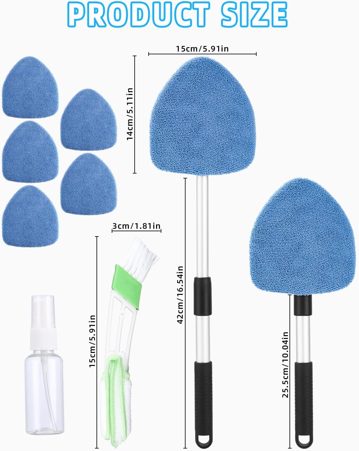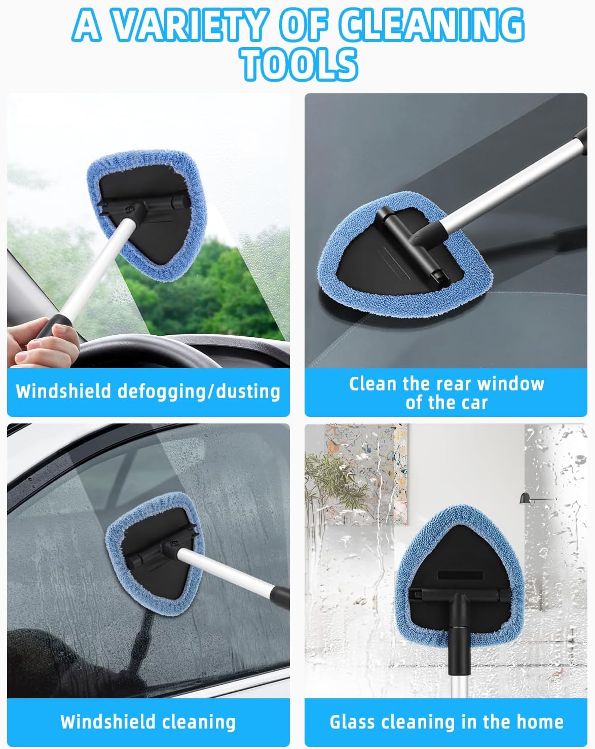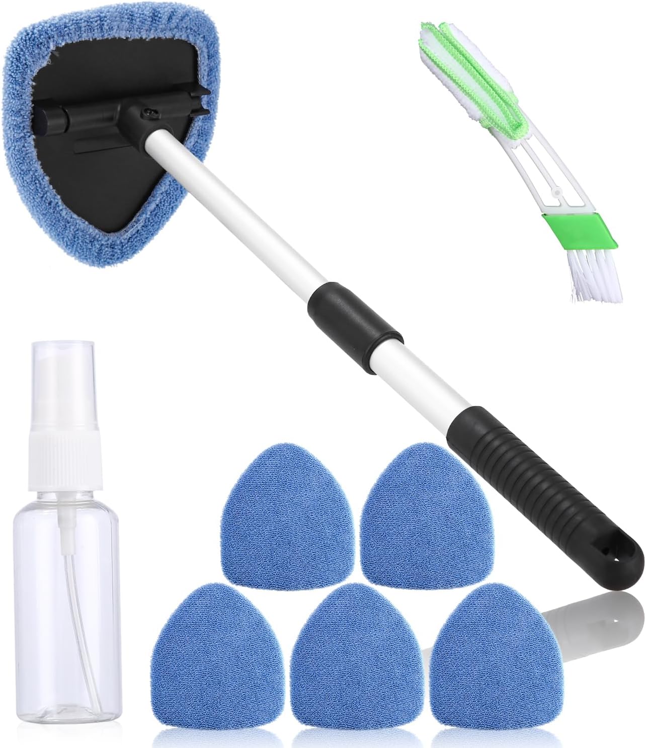 Почистващ препарат за автомобилни стъкла с 6 микрофибърни подложки и спрей бутилки, комплект чистачки за автомобилни стъкла, почистващ препарат за интериор на автомобилни стъкла с разтегателна дръжка, въртящ се на 180 градуса, светлосин