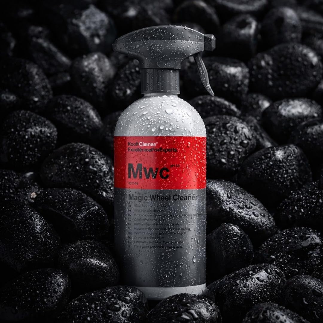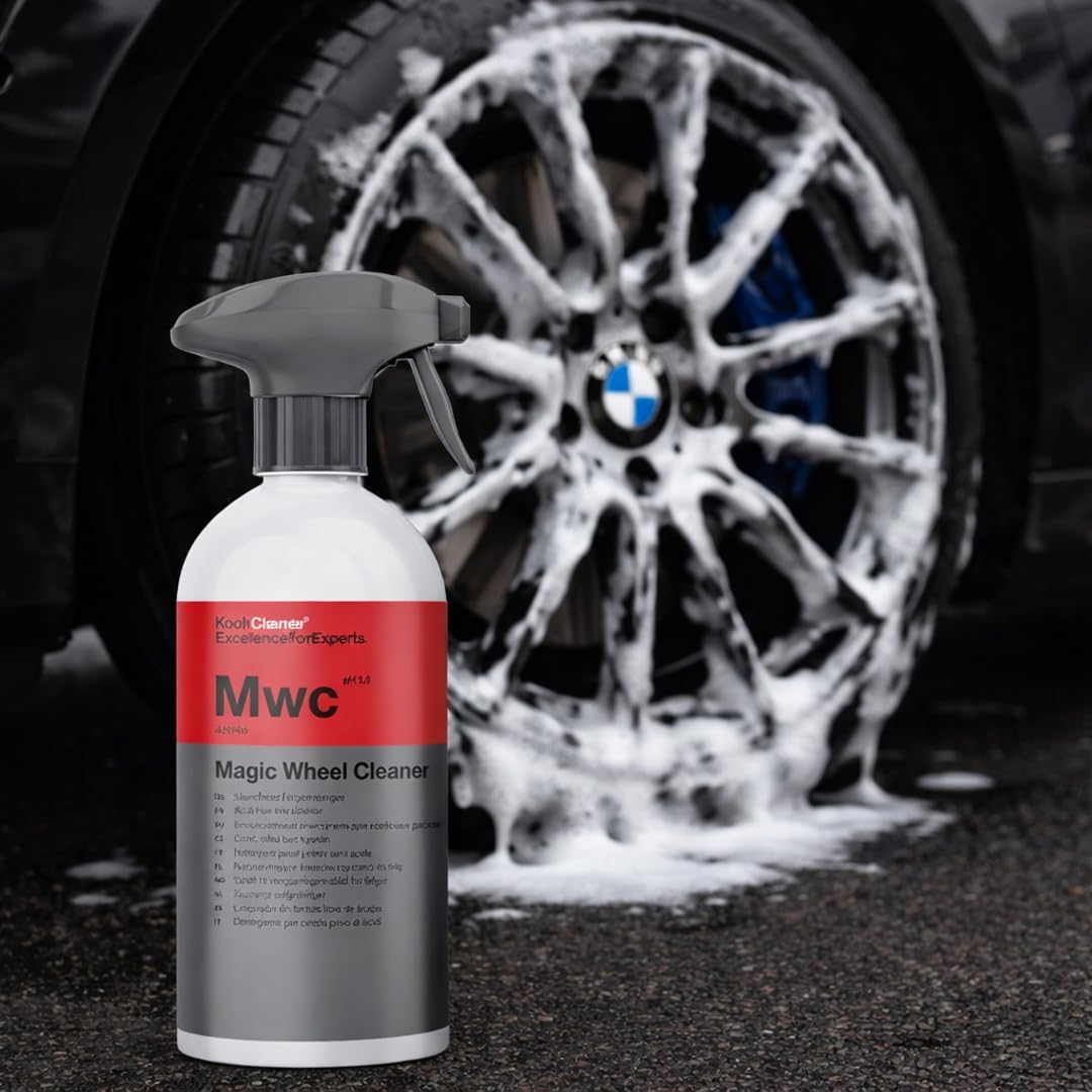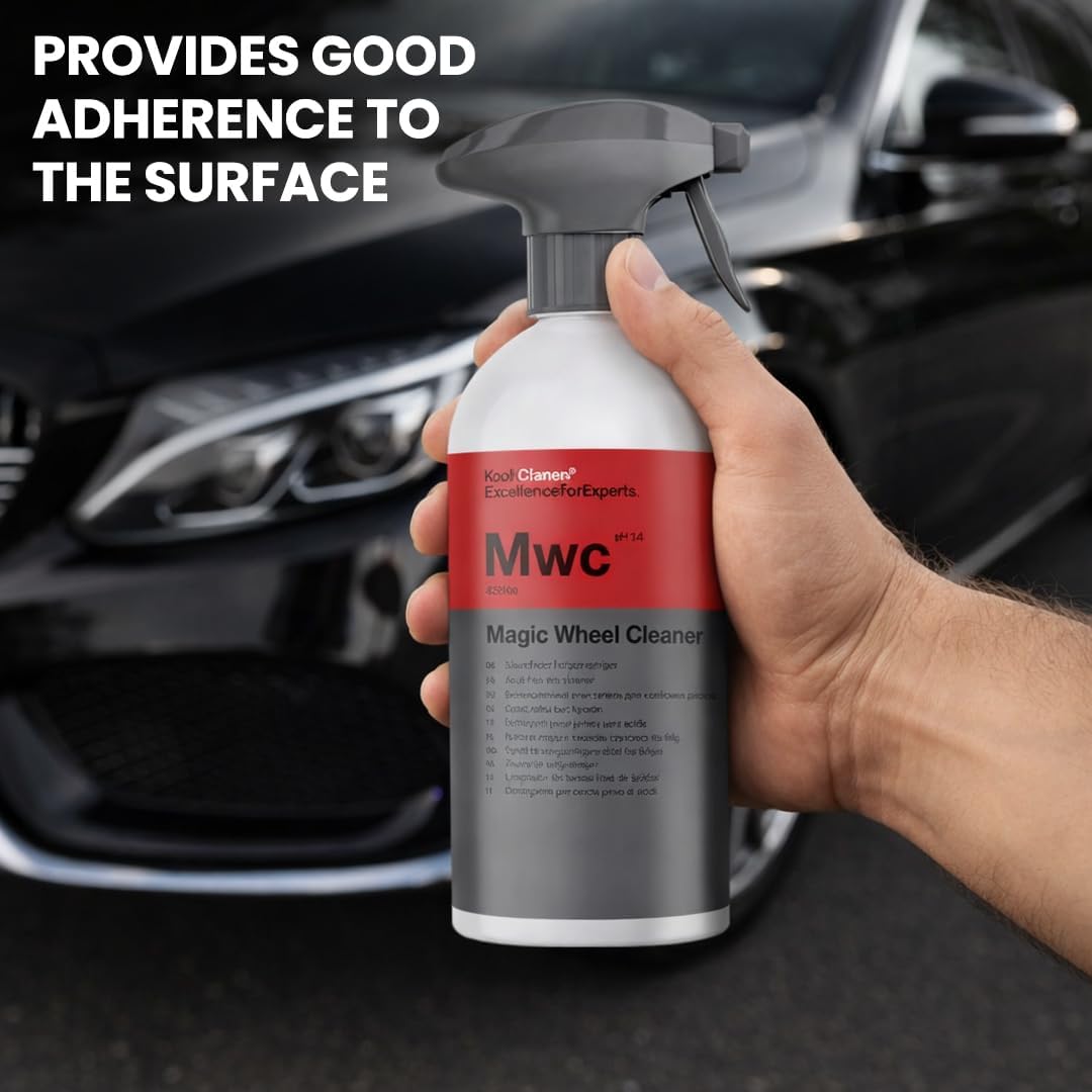 Magic Wheel Cleaner е мощен, вискозен, безкиселинен почистващ препарат с иновативен ефект за нежно дълбоко почистване на джанти и легла на джантите. Реактивният му компонент разтваря железни частици с характерен червен цвят. Специални дисперсанти нежно отстраняват упорити замърсявания от повърхността. Благодарение на вискозната дозировка, пръсканият Magic Wheel Cleaner прилепва много добре към повърхността. Дори след продължително време на експозиция, мръсотията остава свързана и почистващият препарат не изсъхва. Области на приложение: алуминиеви и лакирани джанти, висококачествени хромирани джанти, стоманени джанти.