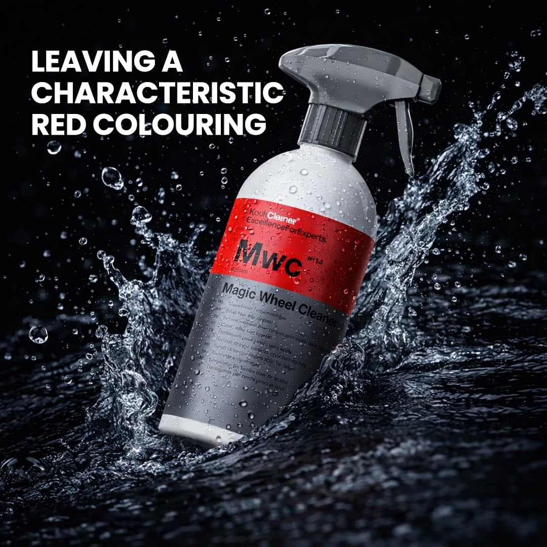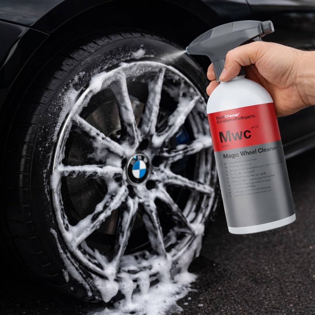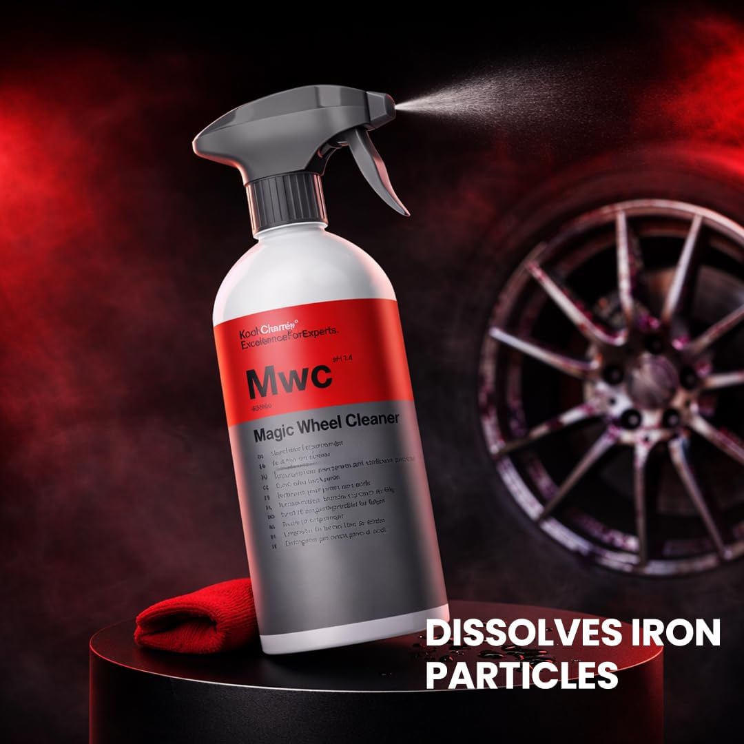 Magic Wheel Cleaner е мощен, вискозен, безкиселинен почистващ препарат с иновативен ефект за нежно дълбоко почистване на джанти и легла на джантите. Реактивният му компонент разтваря железни частици с характерен червен цвят. Специални дисперсанти нежно отстраняват упорити замърсявания от повърхността. Благодарение на вискозната дозировка, пръсканият Magic Wheel Cleaner прилепва много добре към повърхността. Дори след продължително време на експозиция, мръсотията остава свързана и почистващият препарат не изсъхва. Области на приложение: алуминиеви и лакирани джанти, висококачествени хромирани джанти, стоманени джанти.