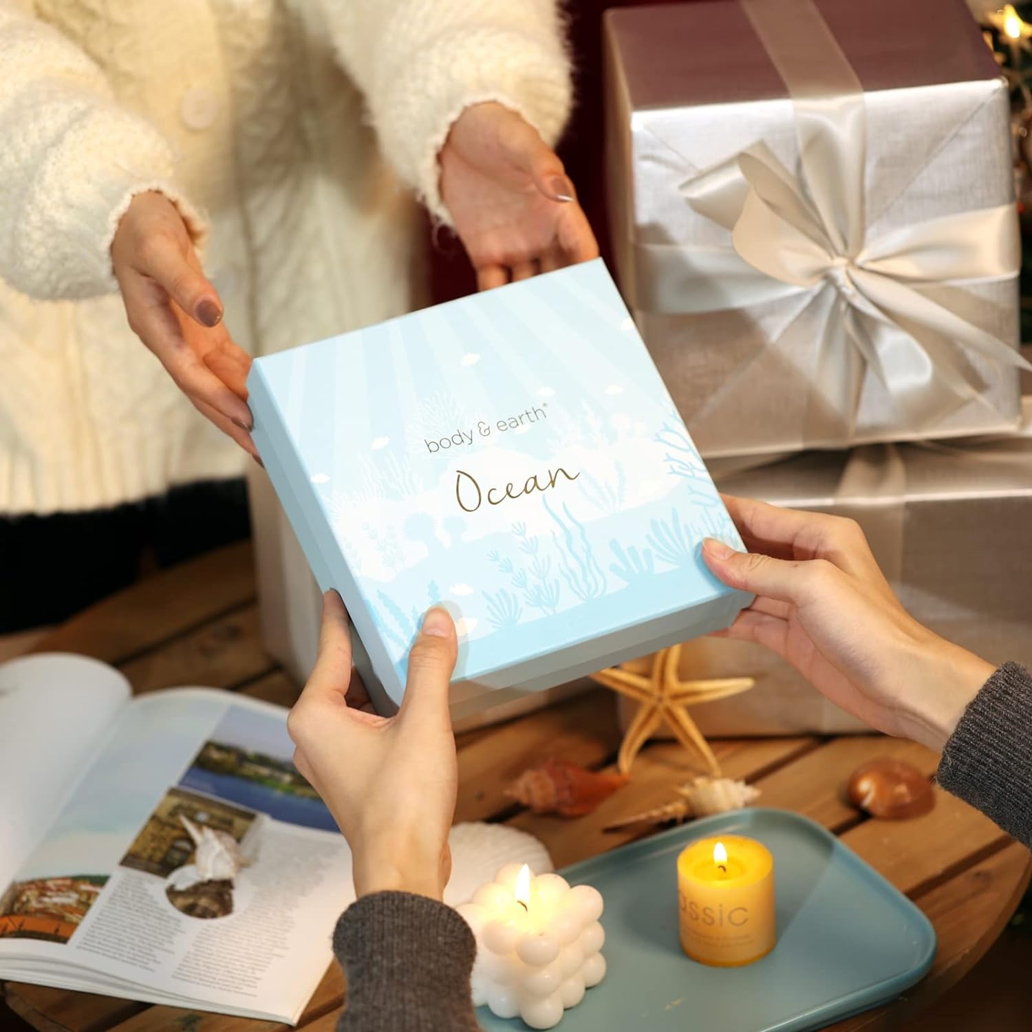 Подаръчен комплект за жени Body & Earth. С Аромат на Океан, Арома свещ, Лосион, Крем за ръце, Бомба за баня и Сапун