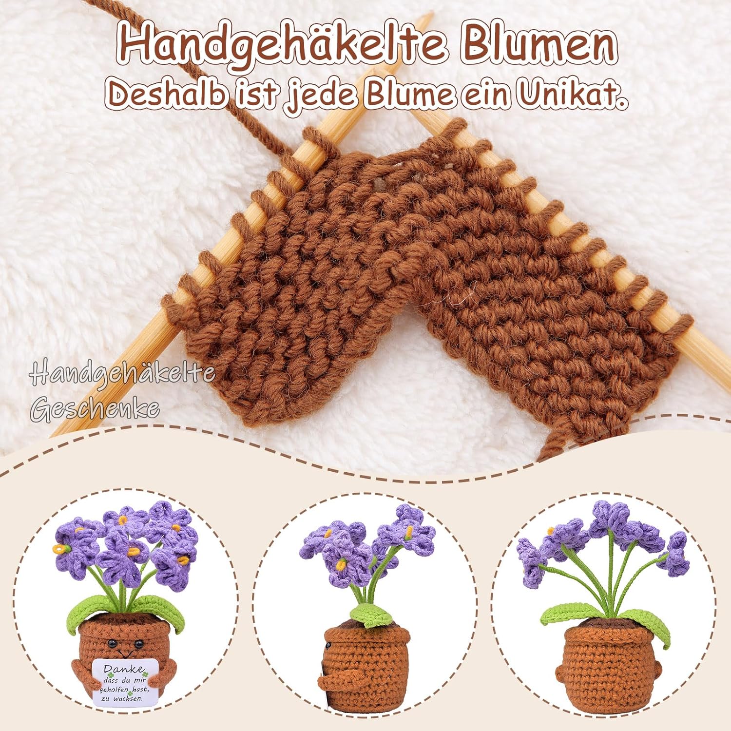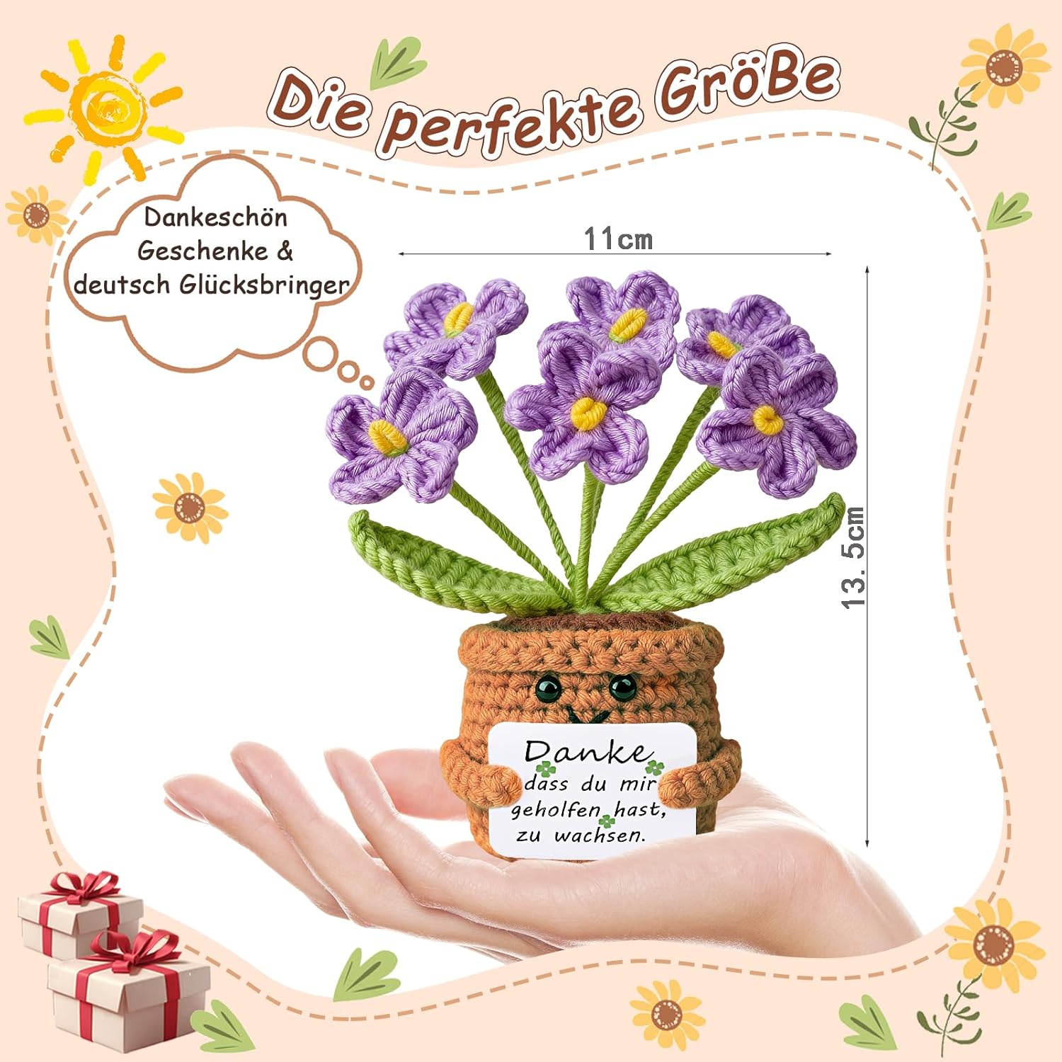 • Ръчно плетено цвете: всяко забавно плетено изделие е внимателно ръчно изработено, меко и удобно на допир, с деликатна изработка, без деформации при натиск. Това е красив и искрен подарък за благодарност за учители. Това цвете със сигурност ще ви накара да се усмихнете широко.
