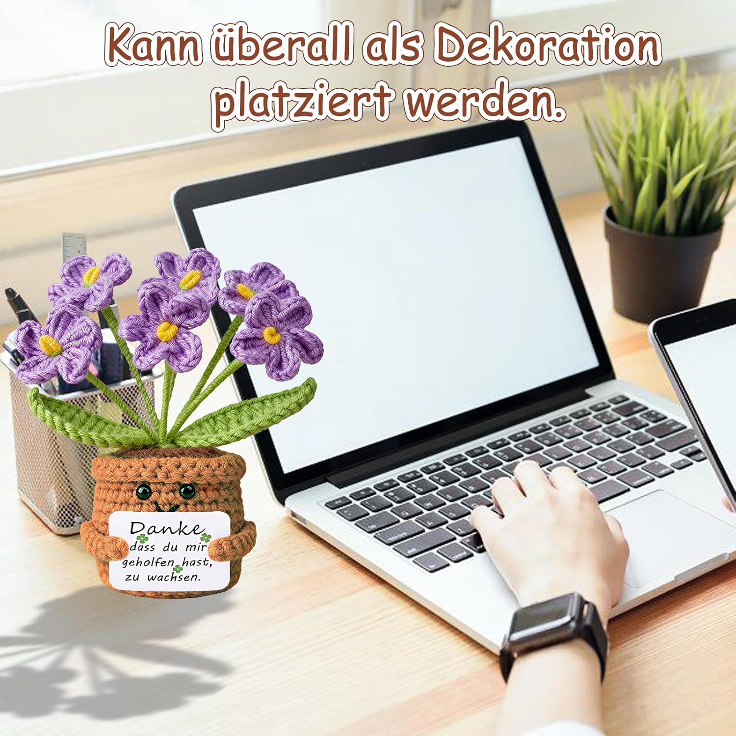 • Креативни декорации: това ръчно изработено плетено цвете е очарователна декорация за бюрото на учителя, класната стая, офиса или дома, добавяйки нотка сладост. Идеално за многостранна декорация в домове, офиси или рафтове, то вдъхва топлина и веселие във всяка стая. Перфектен подарък за признание от ученика към учителя.