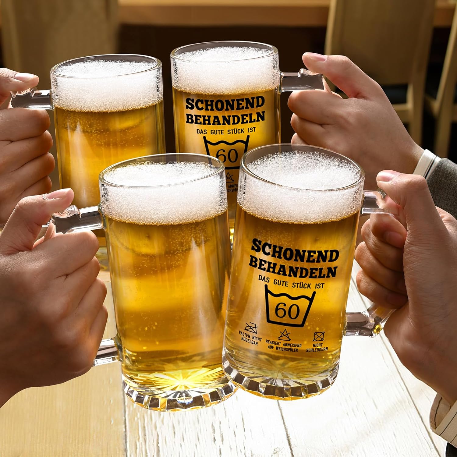• Лесно почистване: Препоръчително е чашите за бира (подаръци за рожден ден) да се мият на ръка, за да се осигури по-дълъг живот. Можете да миете чашата за бира с топла или студена вода с четка за стъкло. Не се препоръчва използването на съдомиялна машина. Специалната техника на декоративен печат гарантира, че думите върху чашата няма лесно да избледнеят, така че можете да я почиствате без притеснение.
